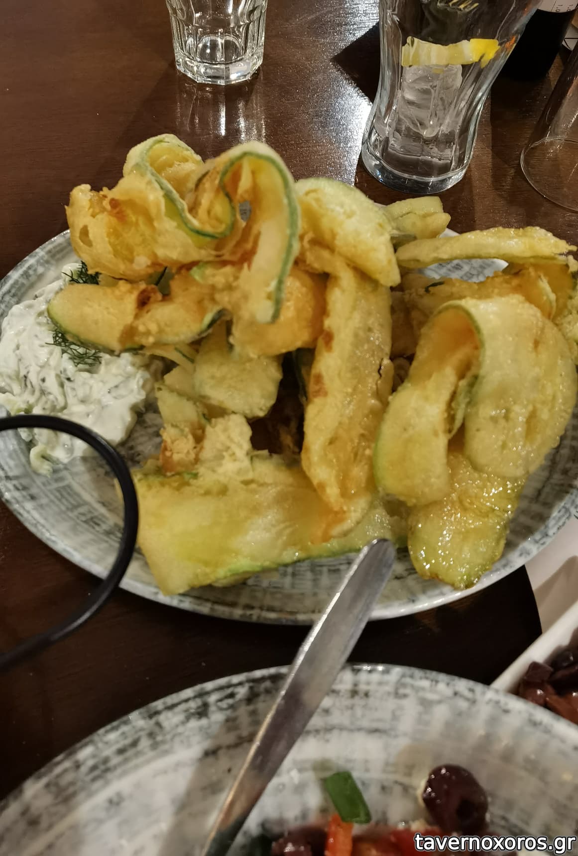 Κολοκυθάκια τηγανητά (χάλια, πέρα ότι σερβιρίστηκαν κρύα δεν τα στράγγιξαν καθόλου)