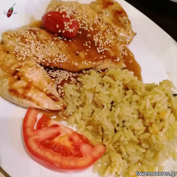 Μελωμένο κοτόπουλο (καλό, άρεσε στην παρέα πολύ)