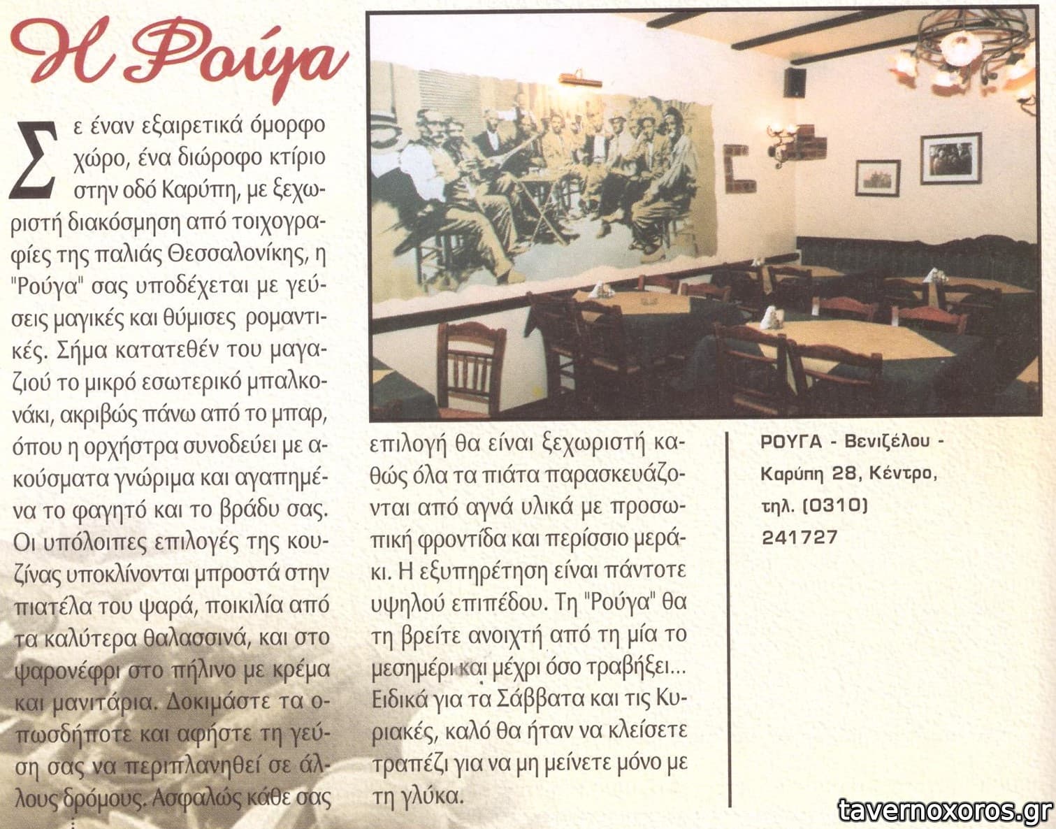 Στο προκείμενο, η Ρούγα είναι μια αρκετά καλή ταβέρνα. Όχι τίποτα εξαιρετικό αλλά σίγουρα αποδεκτό. Καλό σέρβις επίσης.