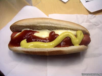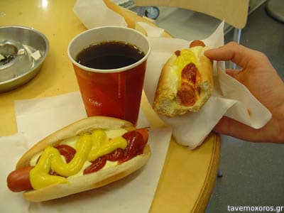 Το hotdog πάντως είναι αφρός. Ένα ψωμάκι που αν το πιέσεις θα γίνει σαν ένα μικρό σοκολατάκι, και ένα λουκάνικο που πρέπει να έχει πυκνότητα κρέατος 10%!!!