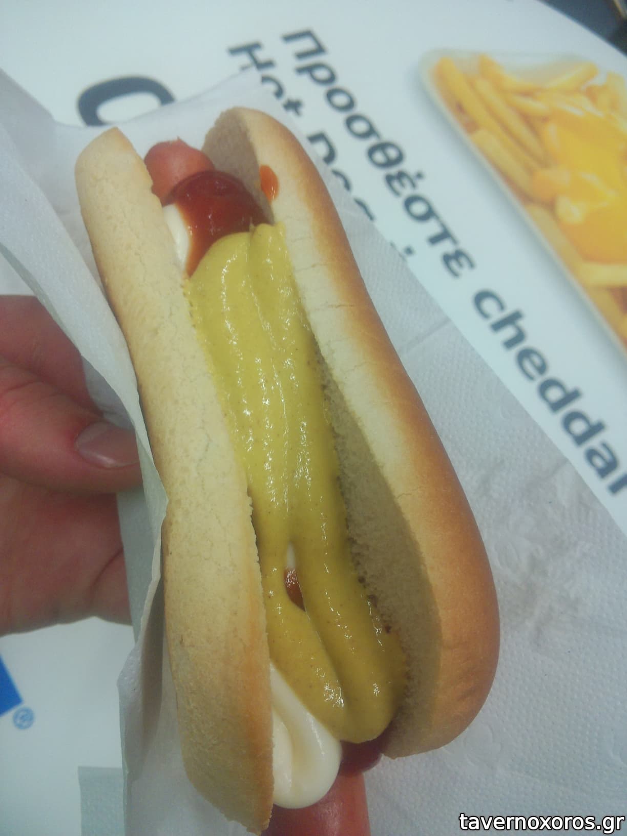 Hotdog με cheddar (άγευστο το cheddar)