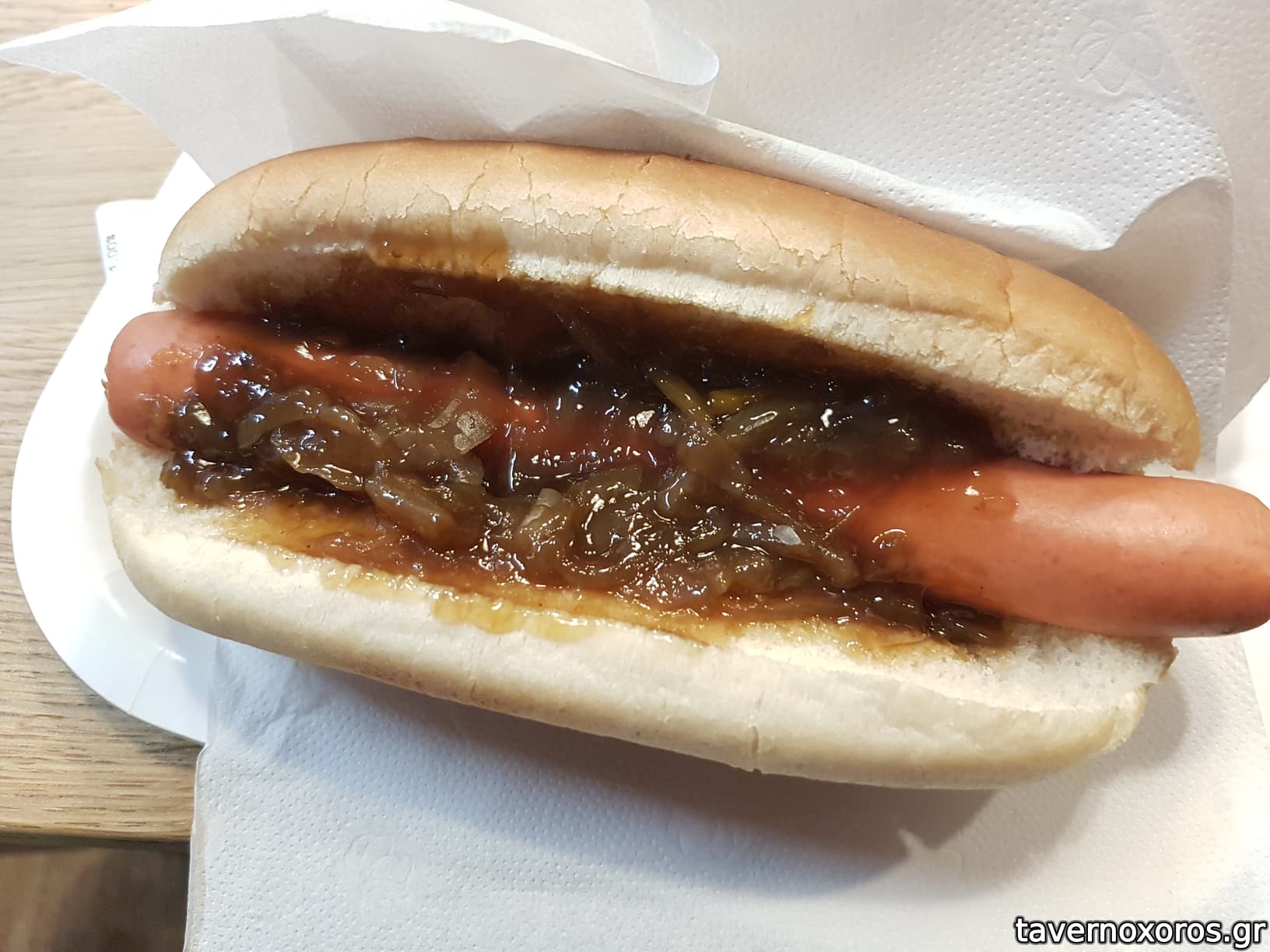"Hotdog με καραμελωμένο κρεμμύδι"