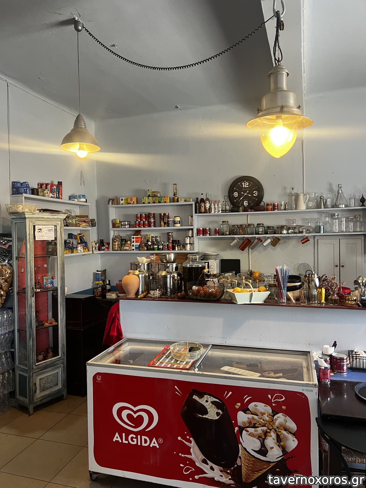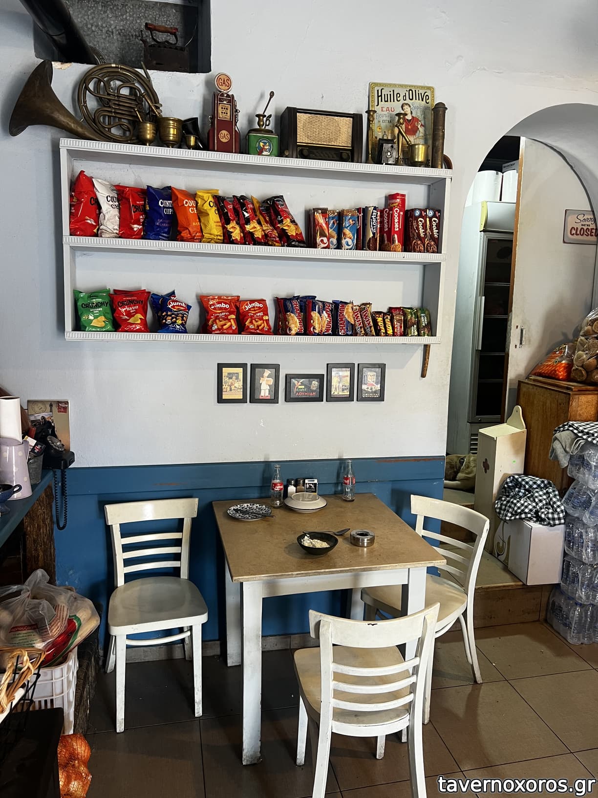 Μικρό καφενείο μέσα στον Βρουχά, με λίγο χώρο μπροστά στον δρόμο. Οι ιδιοκτήτες Σπύρος και Ελισσάβετ αξιαγάπητοι, φιλόξενοι, σε σκλαβώνουν. Δουλεύουν και με κόσμο που ανεβαίνει από Ελούντα.