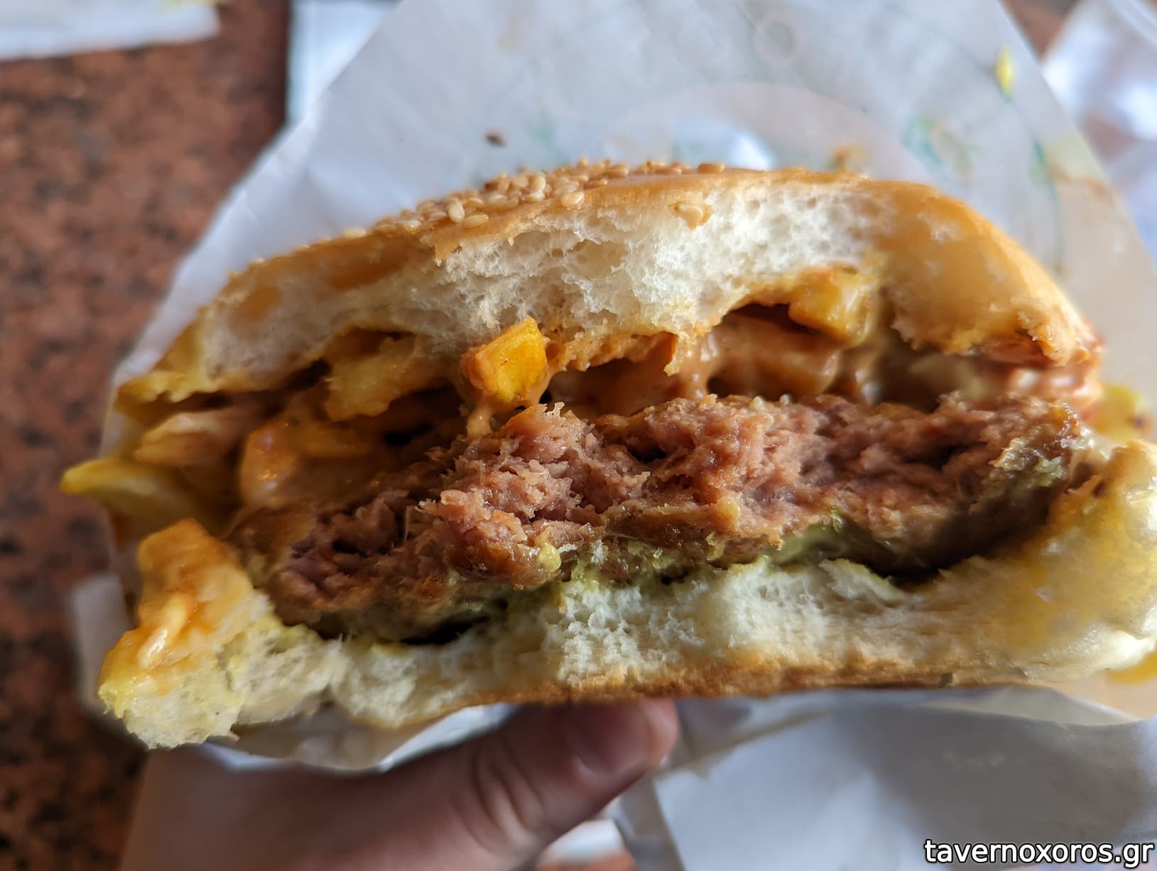 Burger (με το βουνό πατάτας από πάνω)