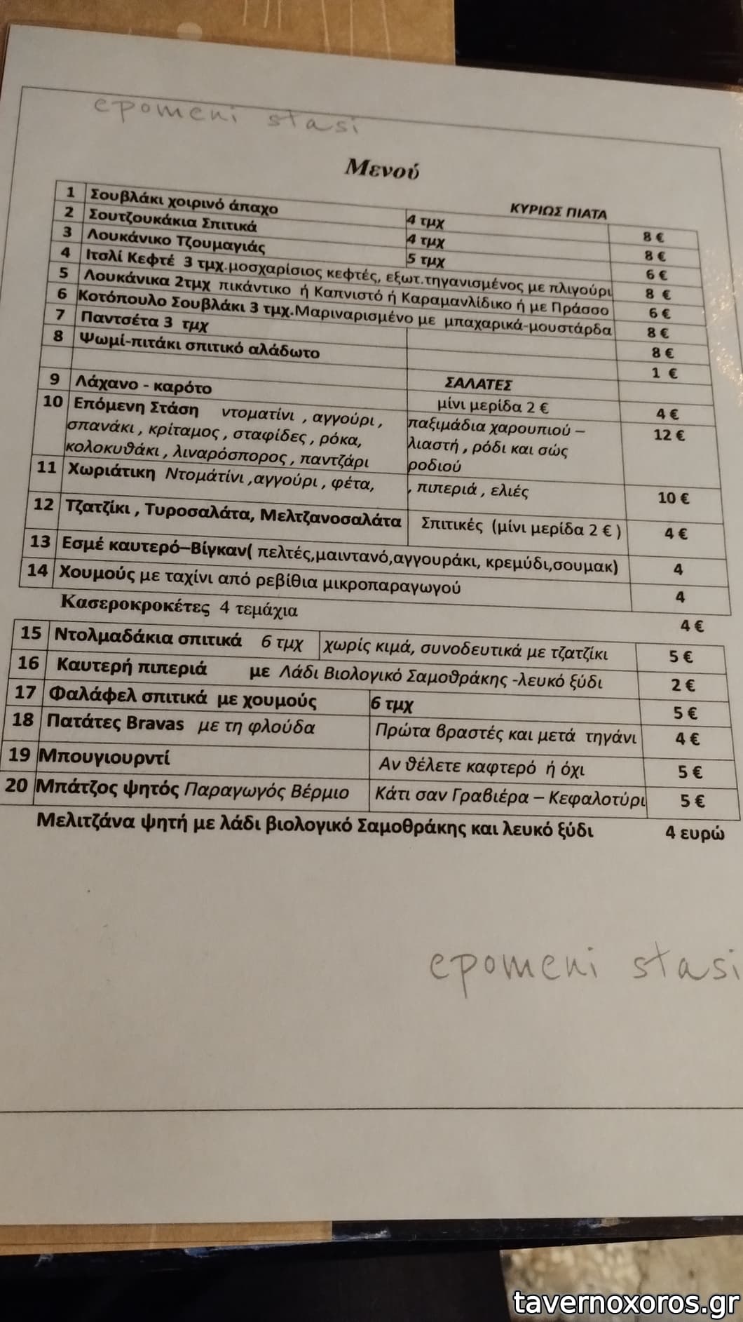 | Λέξεις κλειδιά | Epomeni Stasi, #στοά, #veg-friendly, #εναλλακτικό, #κοινσεπ, #συνεταιριστικό, #συνεργατικό, #εξωτερική θερμάστρα, #ντολμαδάκια, #falafel, #μπάτζος, #εζμέ, #ισλί, #σουβλάκια, #σουτζουκάκια, #πανσέτα, #λουκάνικο, #κοτόπουλο |