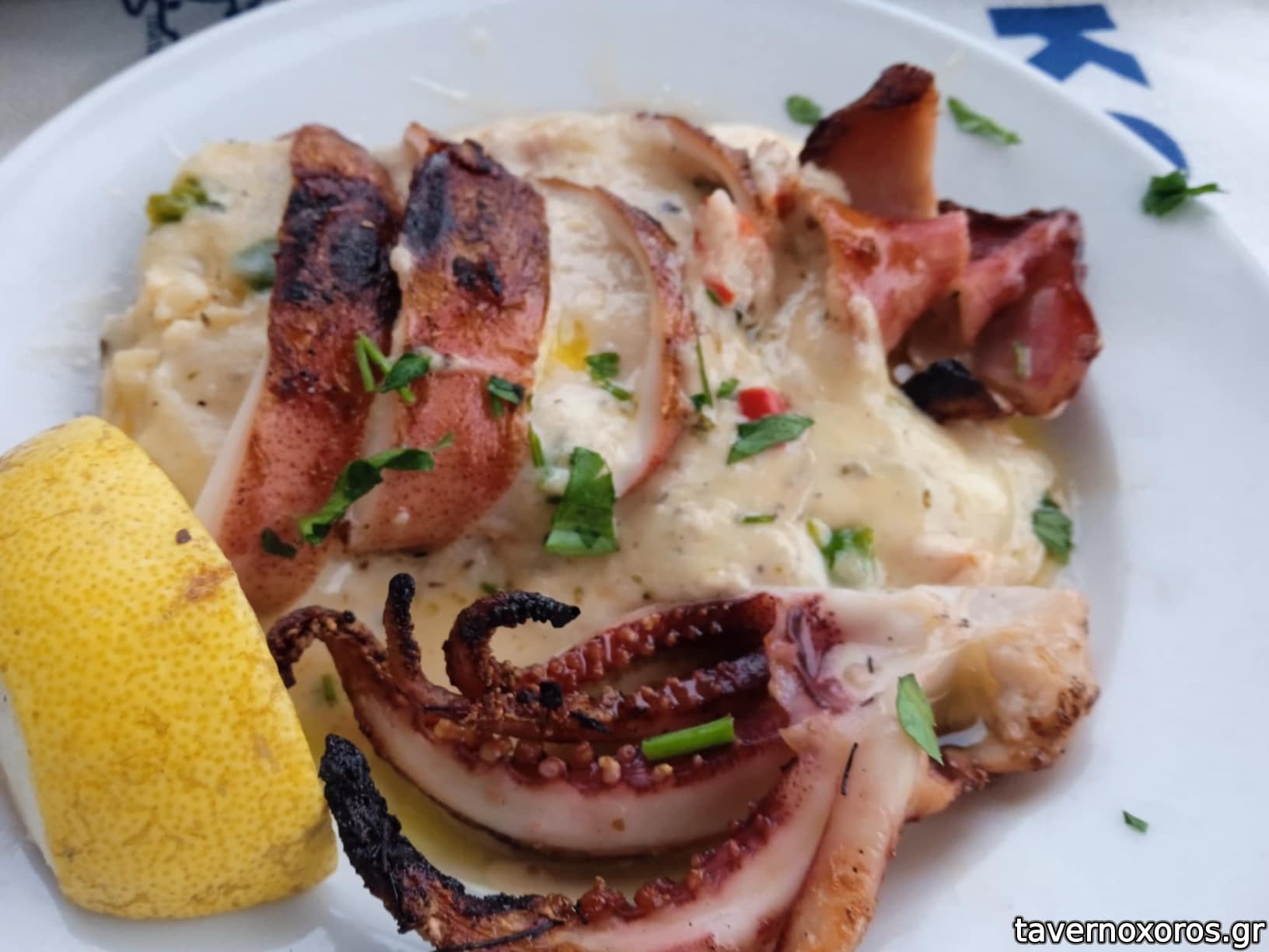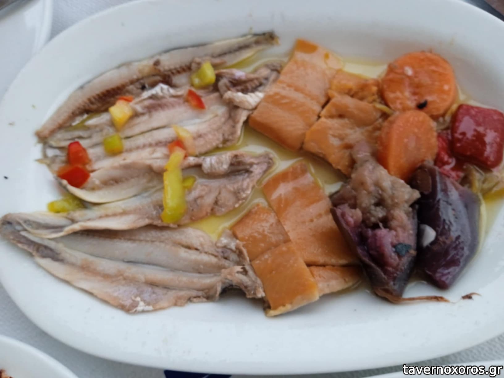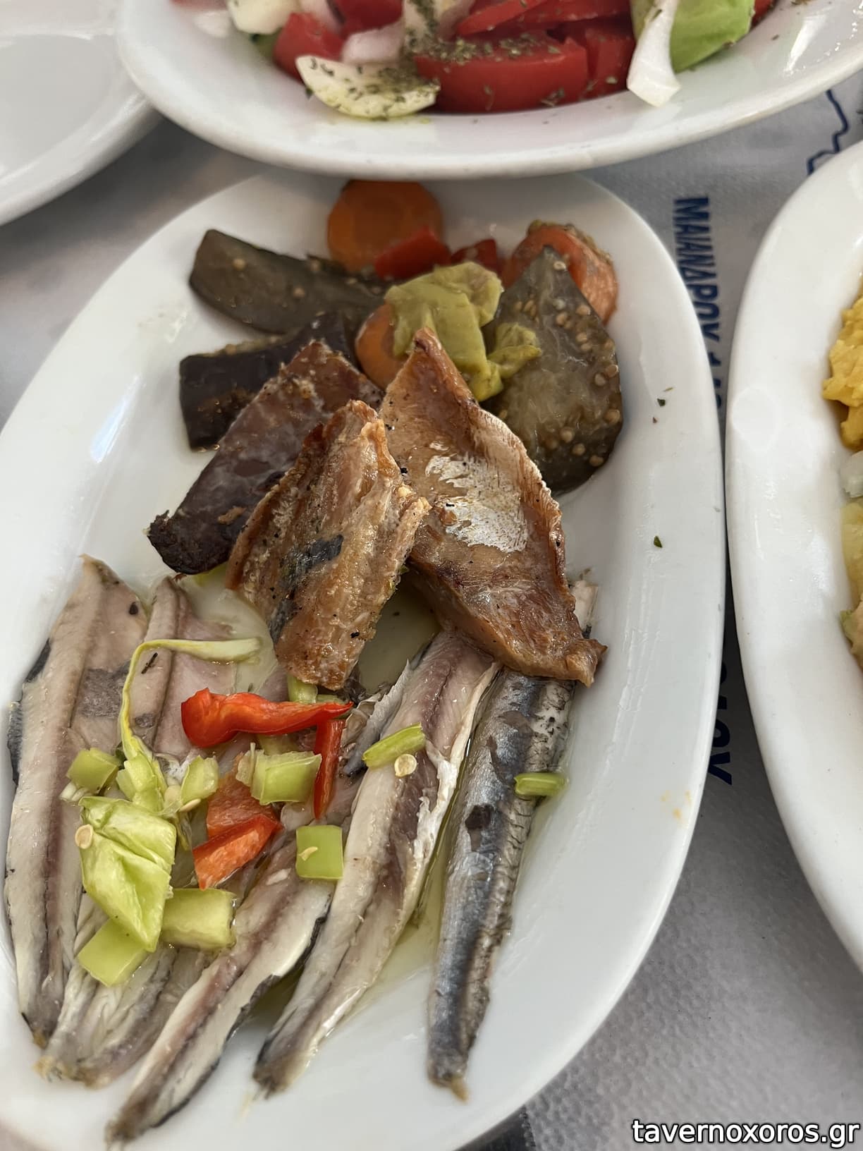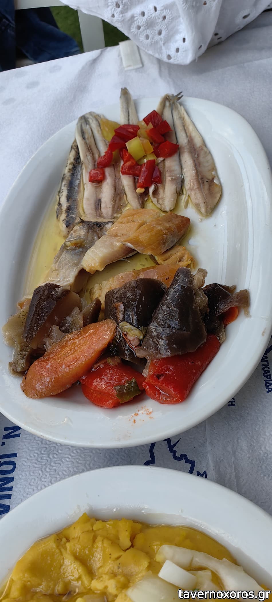 Το πιο νόστιμο ήταν το καλαμάρι γεμιστό, οι κολοκυθοκεφτέδες με ένα ωραίο ντιπάκι και το τουρσί μελιτζάνα που συνόδευε τα παστά.