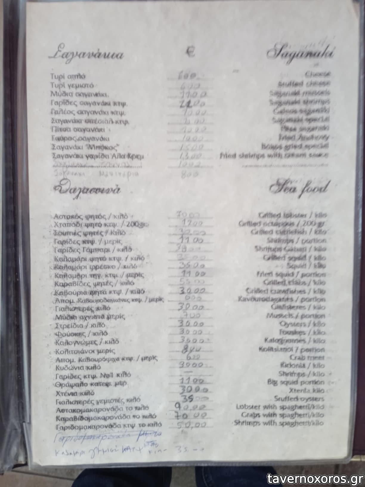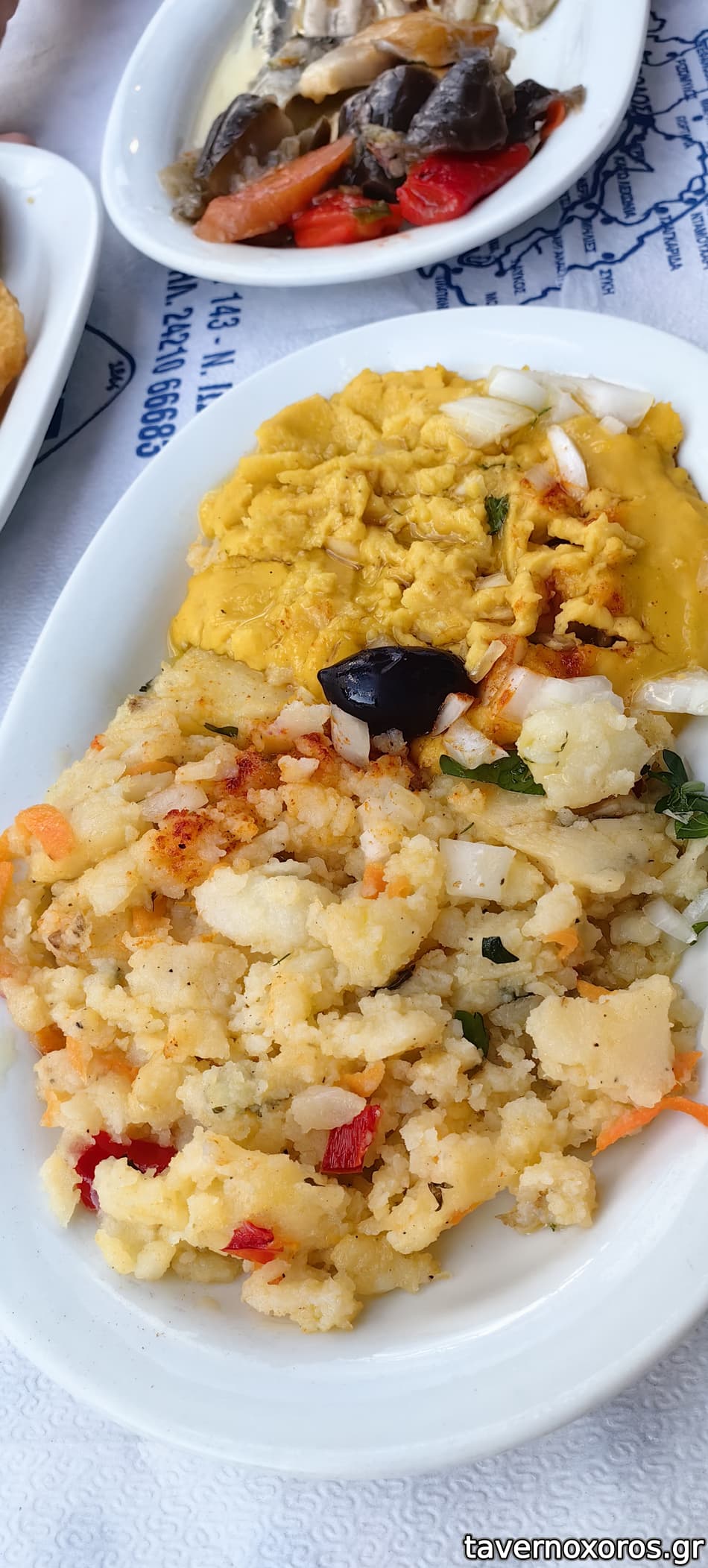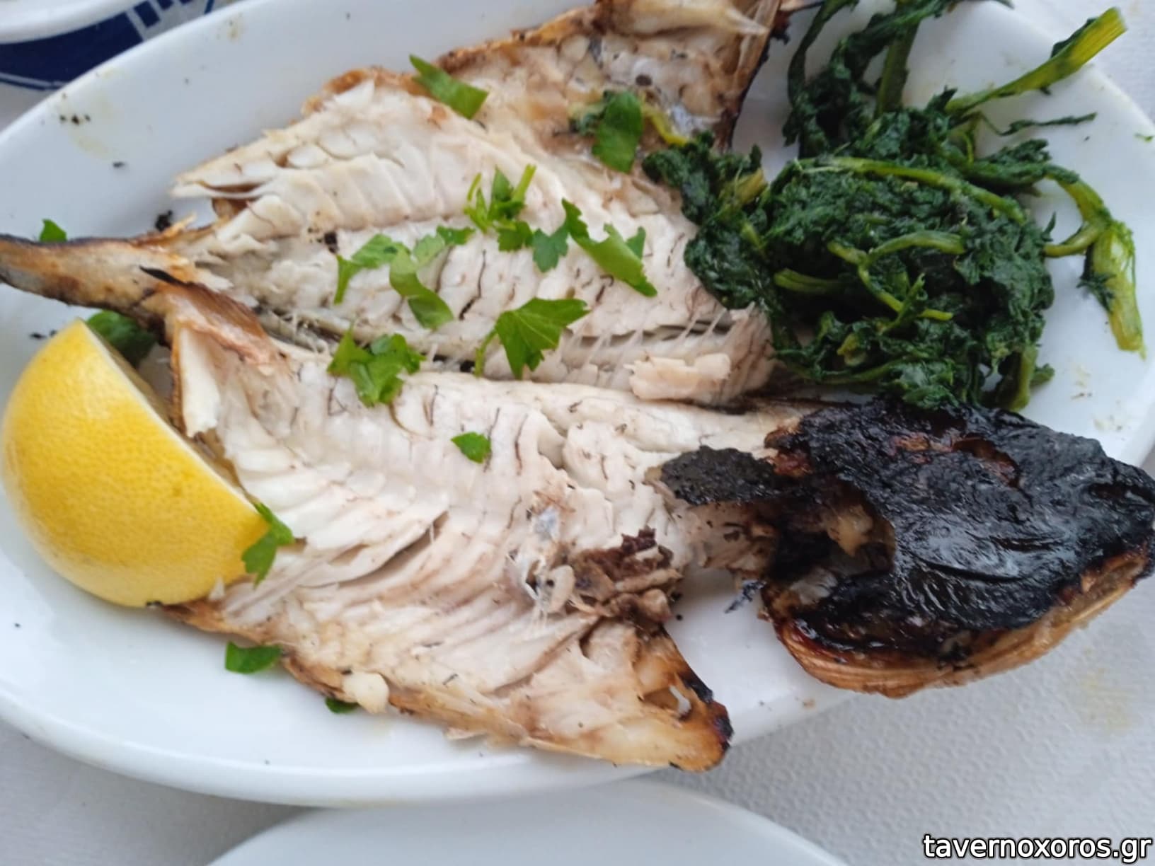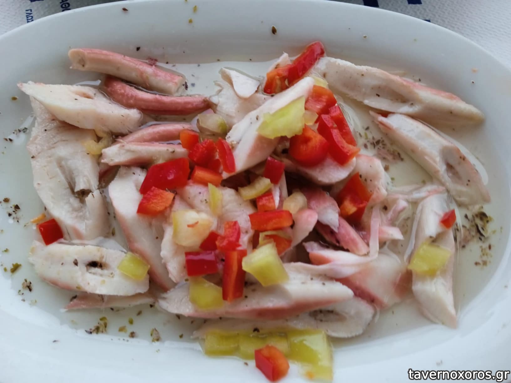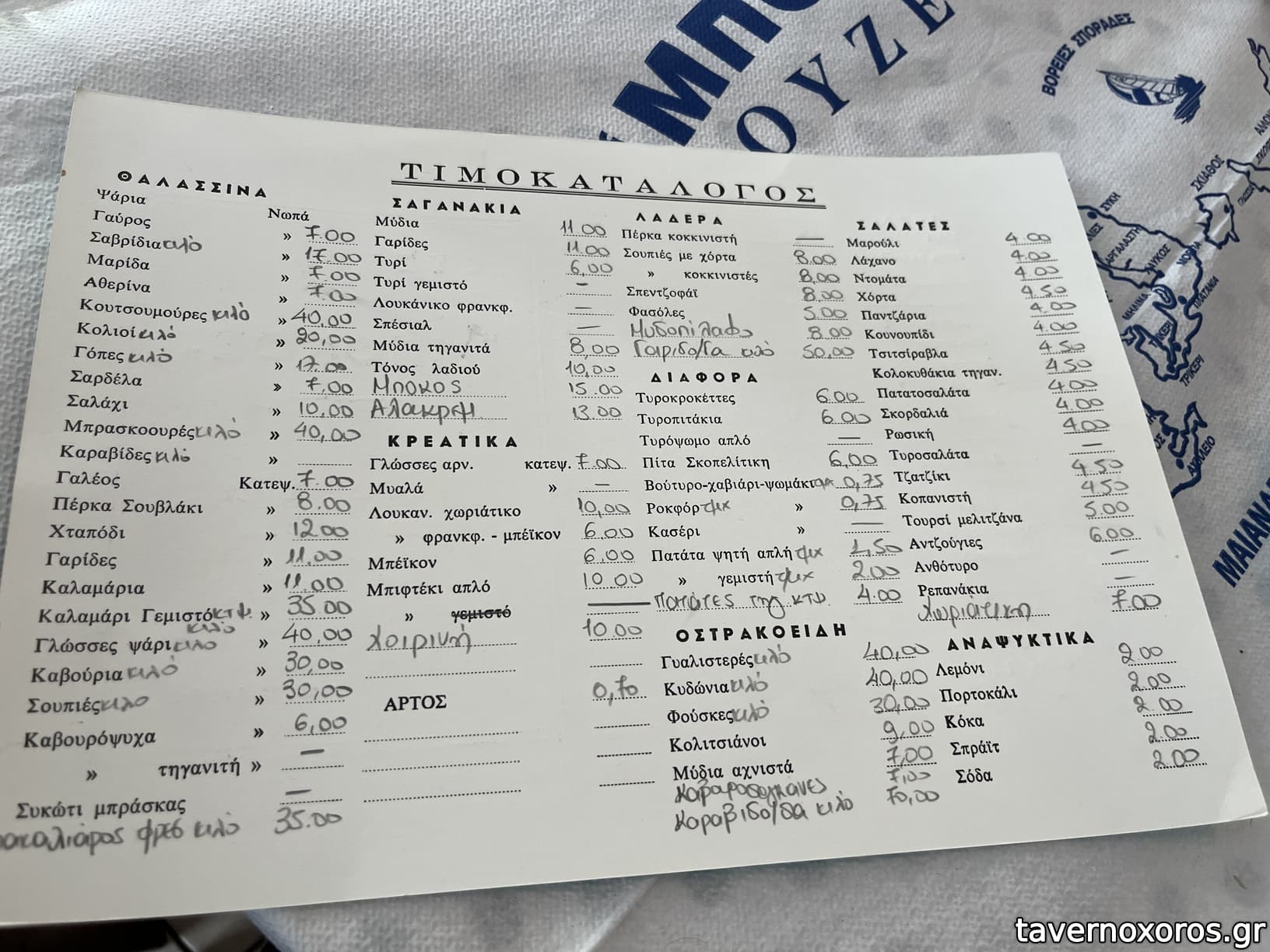Πιο αναλυτικά, ήρθαν 2 ρέγγα, γαύρος μαρινάτος, τουρσιά, 2 χταποδάκι ψητό, πικάντικη (πολίτικη) σαλάτα, 2 φάβα, κρεμμύδι, ελιά, 2 μπακαλιάρος, μαγιονέζα σκορδαλιάς, 2 γαύρος τηγανητός, παντζάρια, 2 μυδοπίλαφο, 2 γαρίδες τηγανητές, μαρούλι, 2 χταποδάκι βραστό ξιδάτο, πιπεριές κόκκινες και πράσινες, 2 κολοκυθάκια τηγανητά, τζατζίκι, 2 σκοπελίτικη πίτα, ρωσσική σαλάτα, 2 τσιπούρα ψητή στα κάρβουνα «γούνα», 2 γαρίδες σαχανάκι, 1 καλαμάρι γεμιστό με κασέρι, 1 σουπιά ψητή στα κάρβουνα, καρότο (βλ. φωτο).