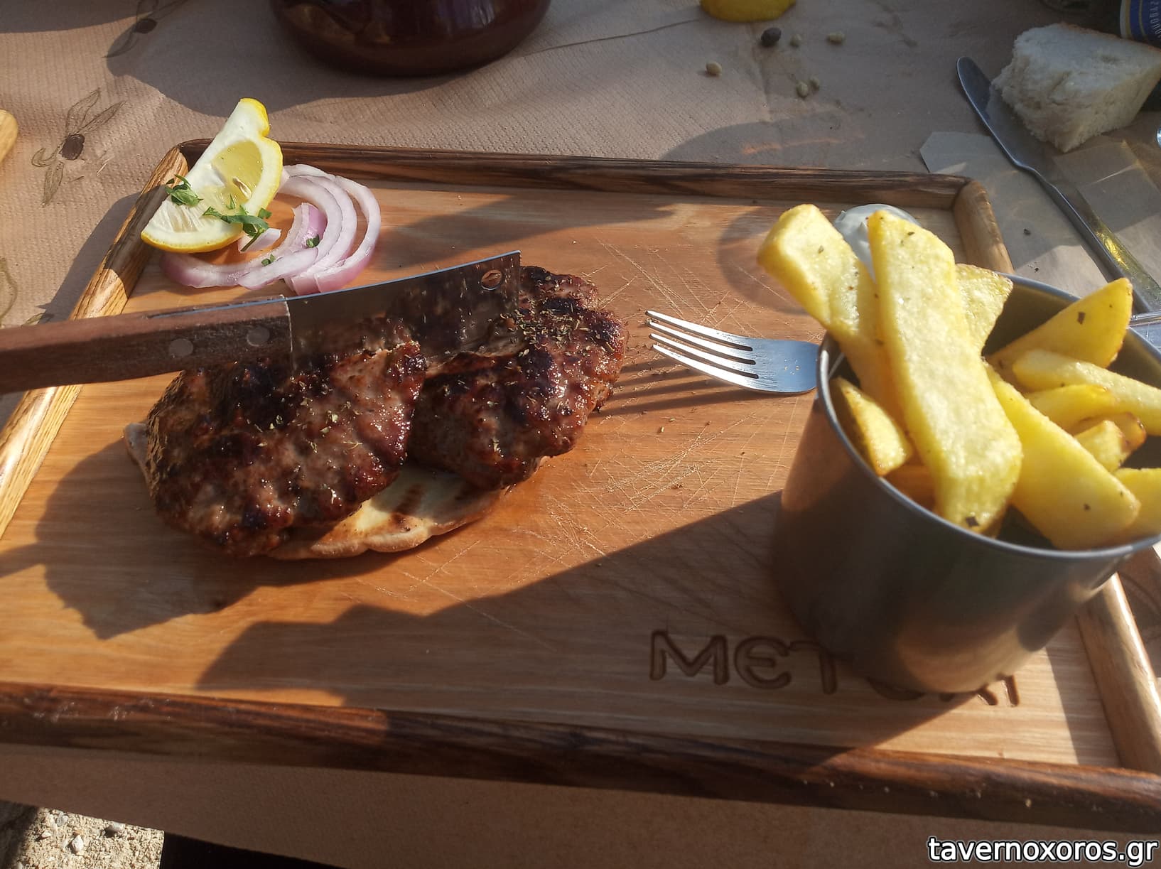 Από φαγητό ενδιαφέροντα ψητά, σερβιρισμένα εντυπωσιακά πάνω σε ξύλινα ταμπλό (βλ. φωτό). Το Μπιφτέκι μου άρεσε πιο πολύ, αλλά θεωρώ ότι έπρεπε να έχει και 3ο τεμ. στη μερίδα.