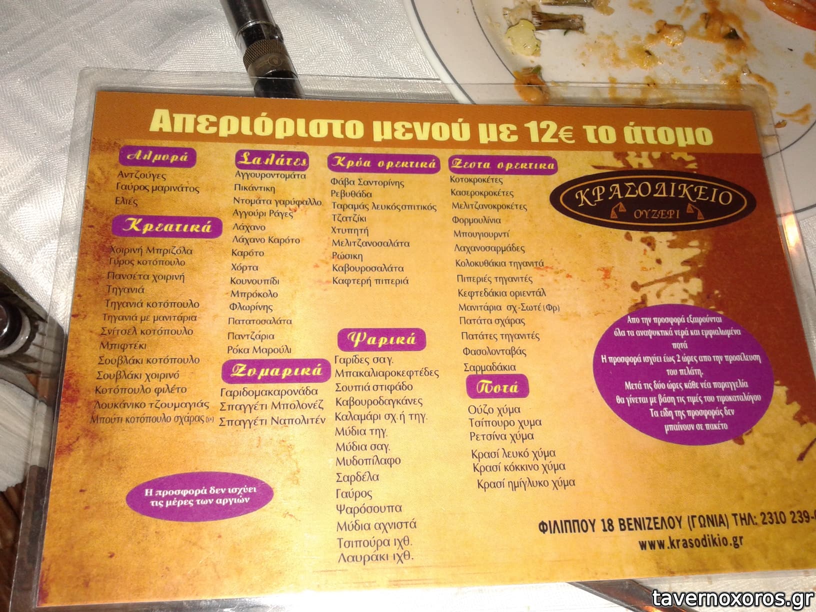 επιλέξαμε την προσφορά με 12€ απεριόριστο φαγητό/αλκοολ.