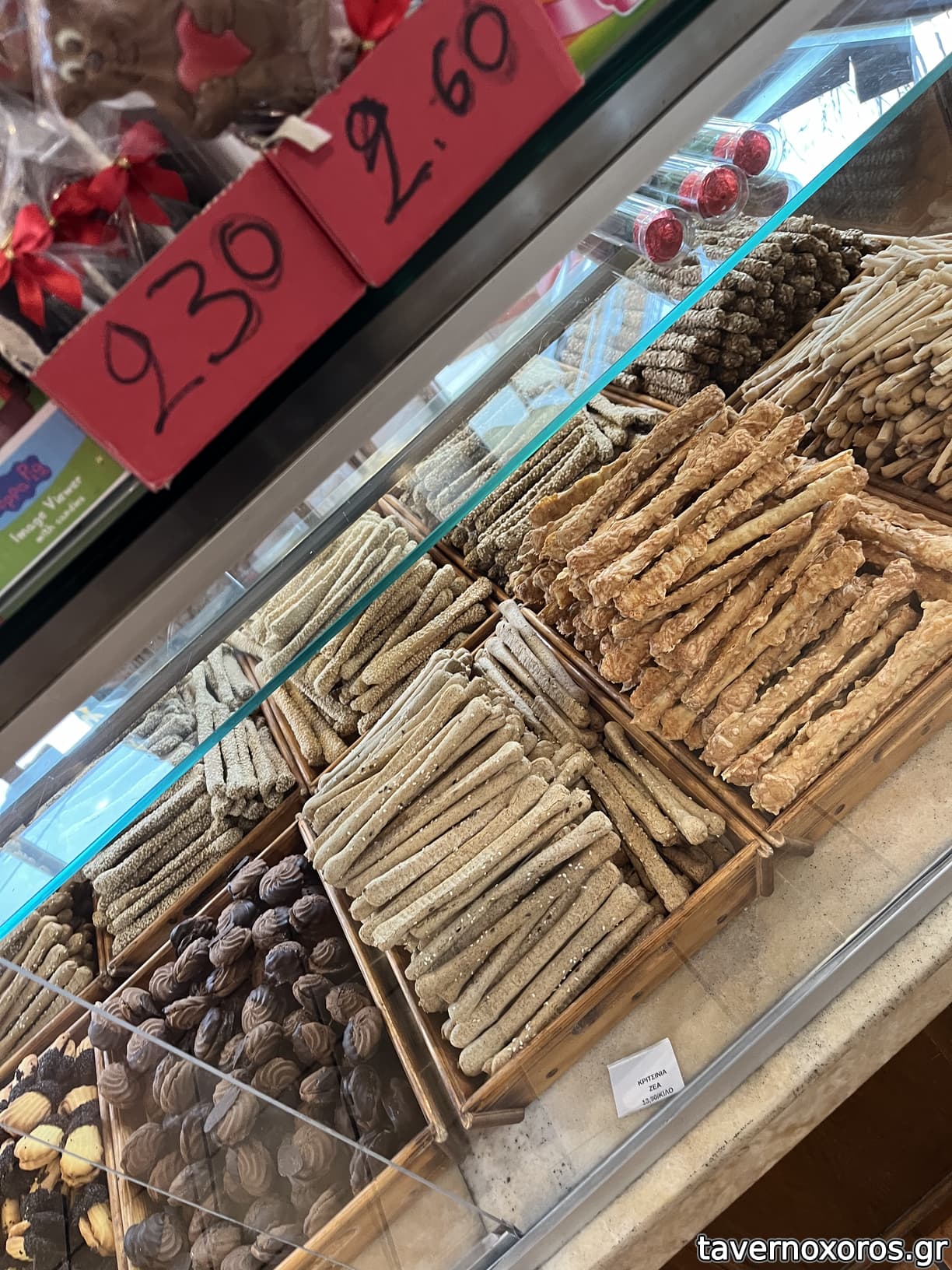 Κριτσίνια καλαμποκιού κάτω του μετρίου, λες και μπέρδεψαν το μέιγμα με κουλουράκια πορτοκαλιού; Σαν να είχε βανίλια; Δεν ξέρω. Κουλούρι με γέμιση τυρί μέτριο αλλά δεν μπορώ να πω αντικειμενικά γιατί το πήρα βράδυ. Πολύ θετικό που δεν ήταν κακό όμως. Η ποικιλία όμως του καταστήματος και οι μυρωδιές, όπως και εξυπηρέτηση, αφήνουν καλή εντύπωση και θα ξαναπάω για να δω αν αυτά τα κριτσίνια ήταν κάτι το ατυχές. Επίσης με κέρασαν και 4 (!) μελομακάρονα με επικάλυψη σοκολάτας τα οποία τα βρήκα πολύ καλά. Χωρίς να είναι φουλ στο γαρίφαλο, χωρίς πολύ σιρόπι, τραγανά αλλά όχι απο μπαγιατοσύνη και η σοκολάτα έλιωνε στο χέρι, φρέσκια.