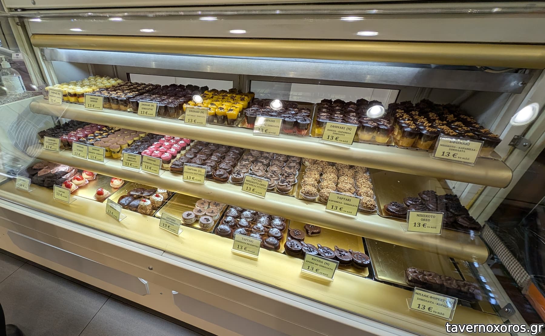 Πανφρεσκα ξανά όλα, τα έκοβε από το ταψί που μόλις είχε βγει. Η σοκολατοπιτα είναι εθιστική. Έβαλα στο μάτι μπακλαβά, κωκ για επόμενη επίσκεψη. Αξίζει και με το παραπάνω. Η δε συμπεριφορά εξαιρετική και ευγενέστατη.