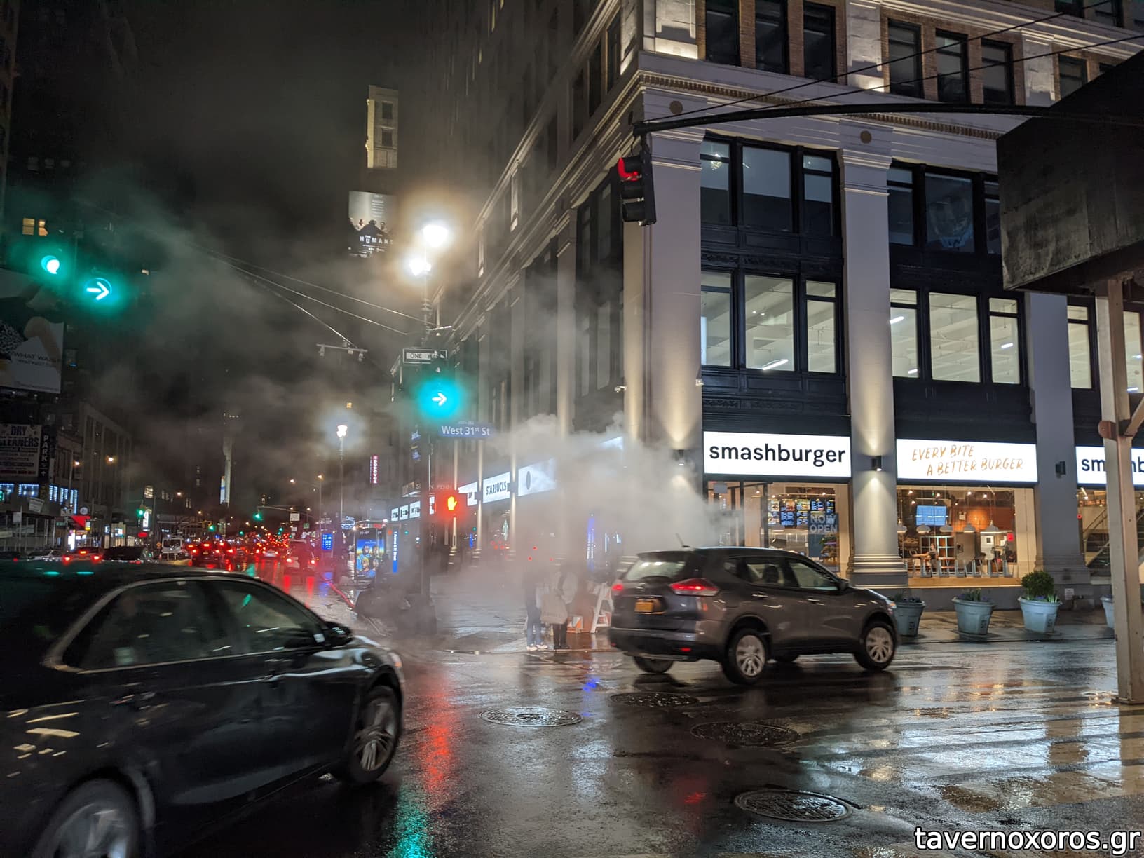 Εξωτερικά, με το διάσημο Νεοϋορκέζικο ατμό να βγαίνει από το έδαφος