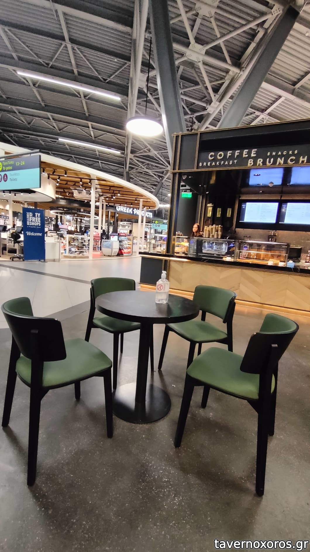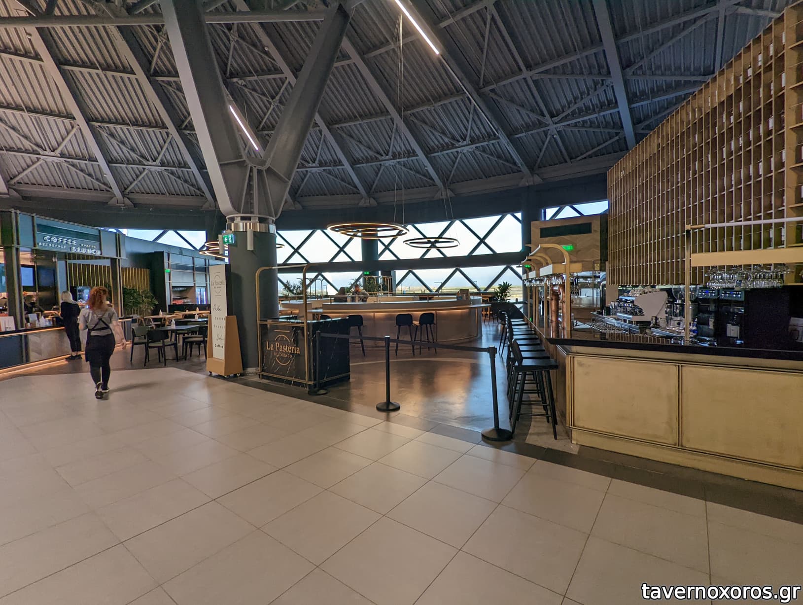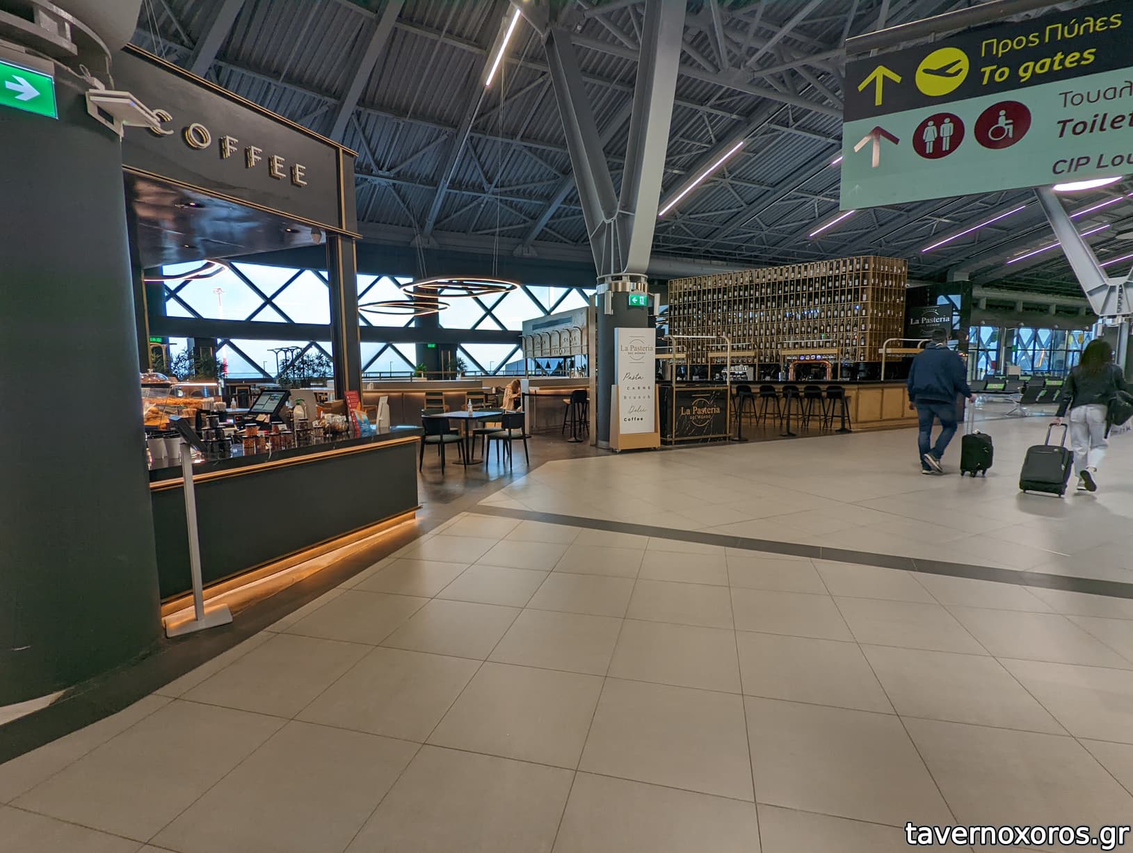Βρίσκεται στο Terminal 2, στον πάνω όροφο (αναχωρήσεις), μετά τον έλεγχο των αποσκευών.