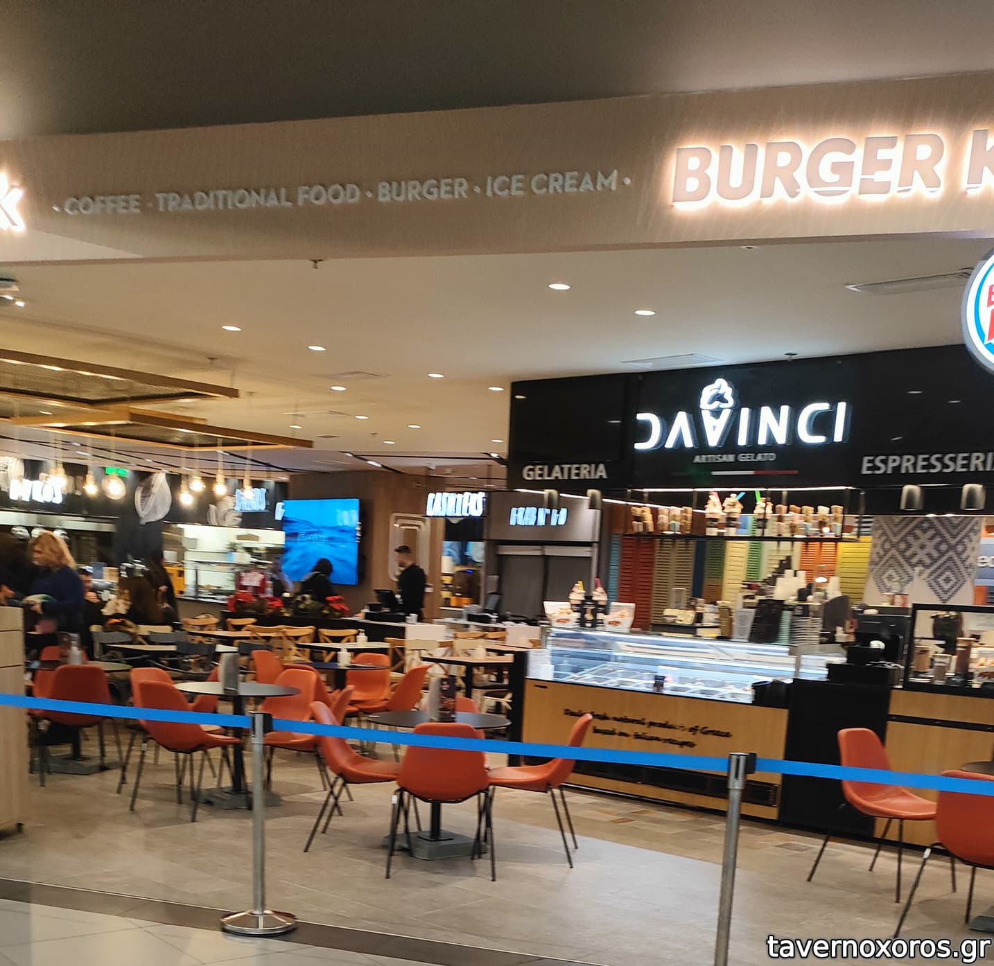 Βρίσκεται στο Terminal 2, στον πάνω όροφο (αναχωρήσεις), μετά τον έλεγχο των αποσκευών.