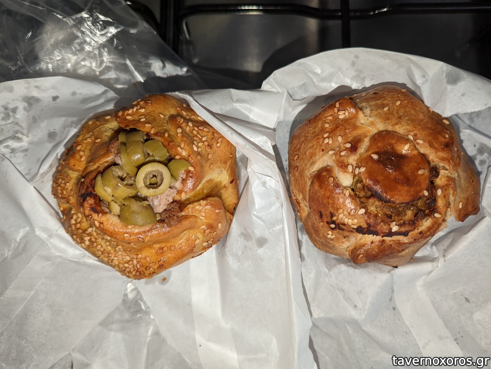 Αριστερά με τόνο και σπανάκι (καλό) και δεξιά με τοπικά λουβιά (μια χαρά)