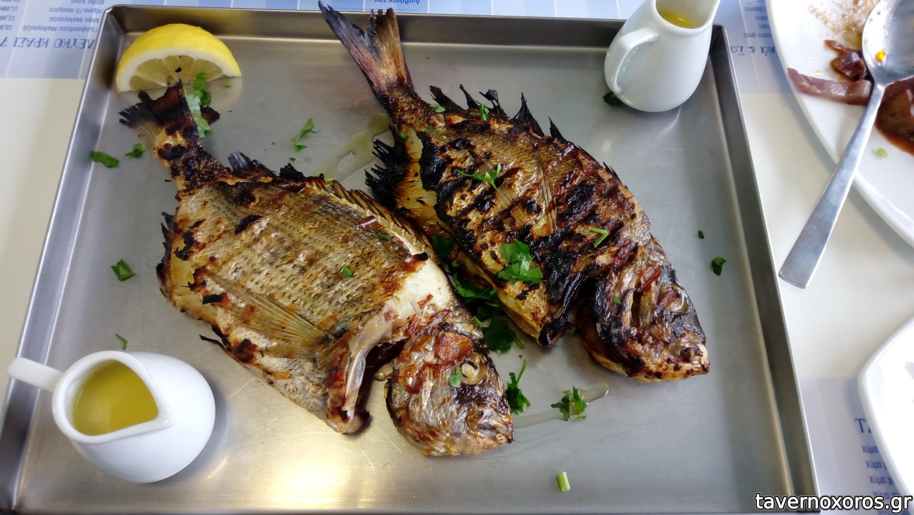 Σαργοί ελευθέρας (πολύ μέτριοι, παραψήθηκαν σε βαθμό που χάλασαν, πολύ καλό το λαδολέμονο)