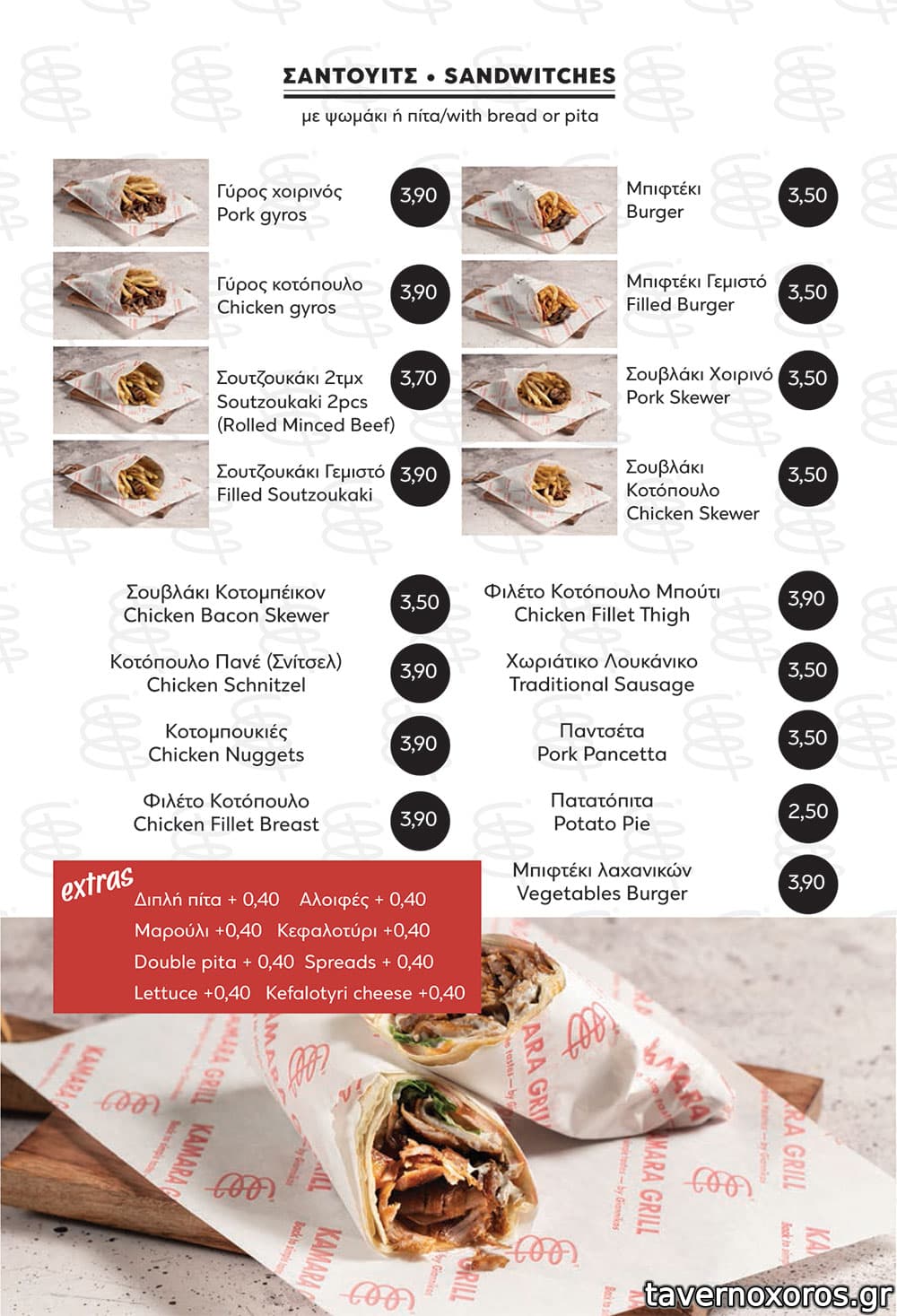 Ένα απλό σάντουιτς πίτα με γύρο χοιρινό και αλοιφή κυμαίνεται στα 4,