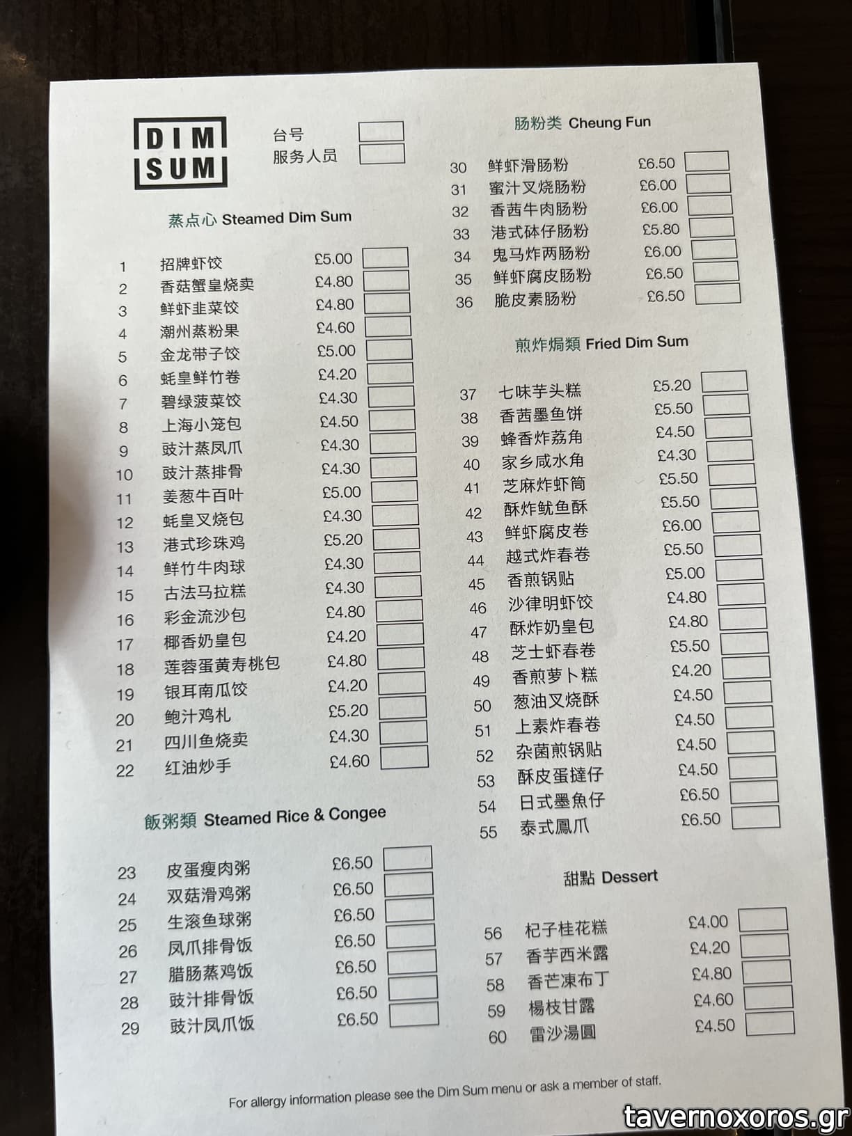 Ειναι γνωστό για τα dim sum ( είναι η κουζίνα που κάνουν οι κινέζοι για πρωινό / brunch ).
