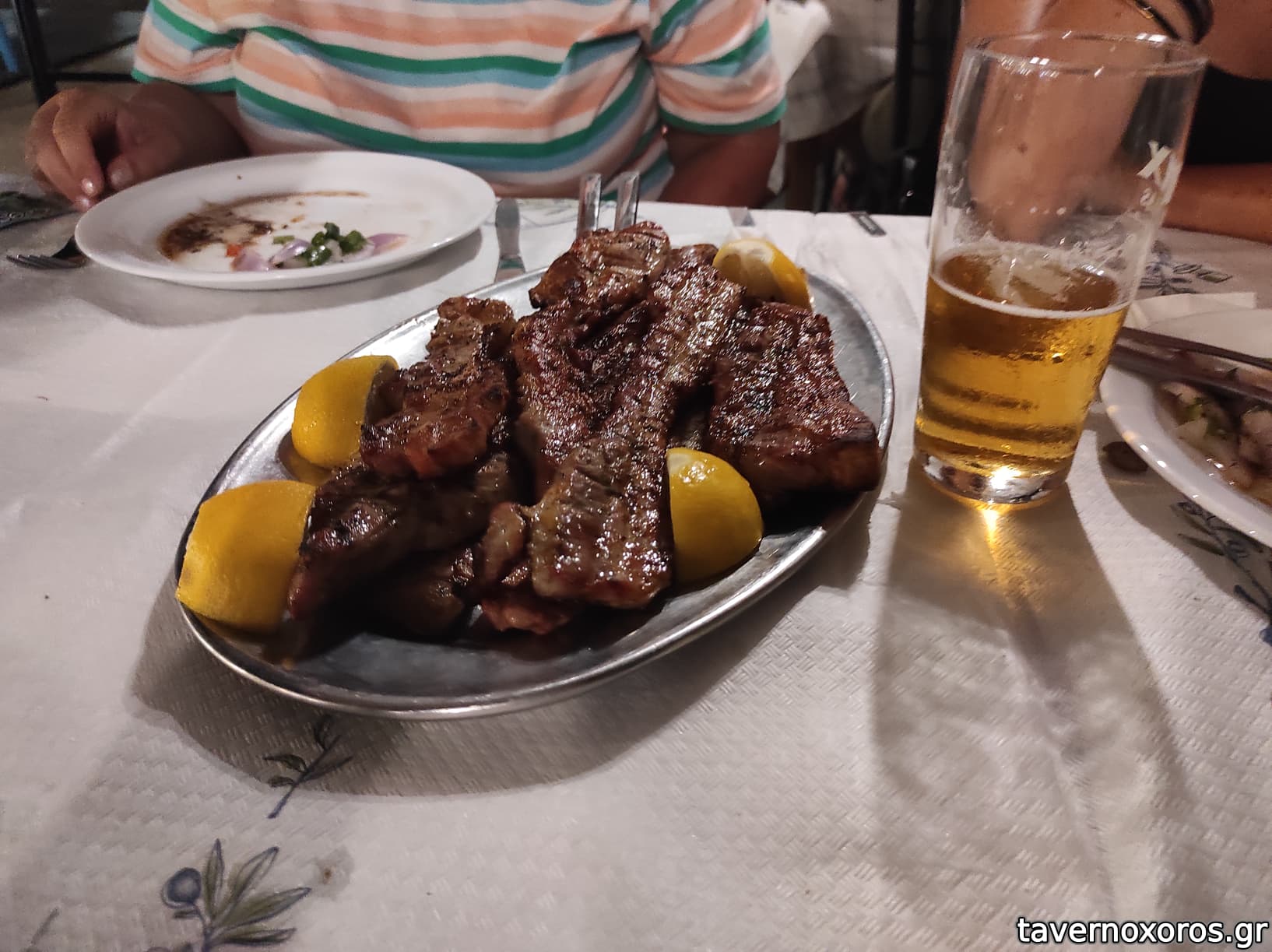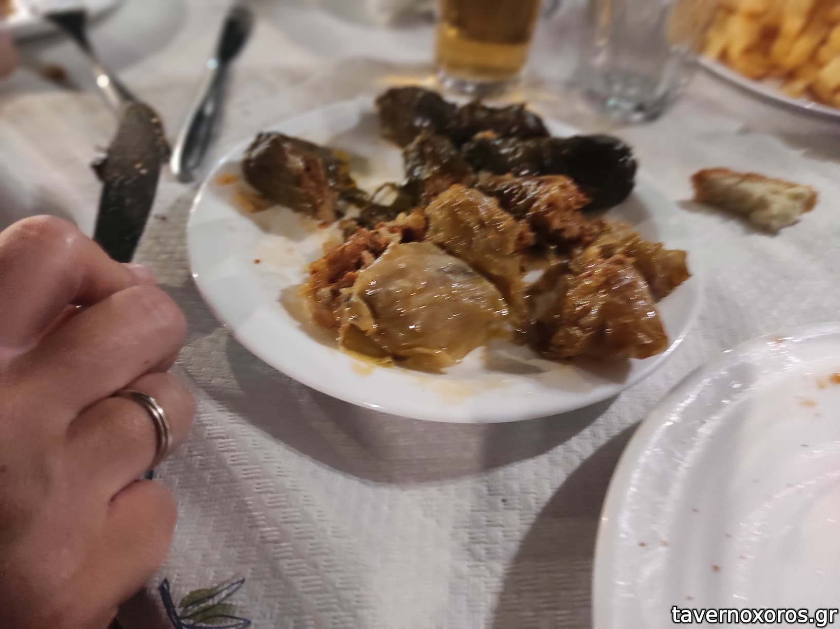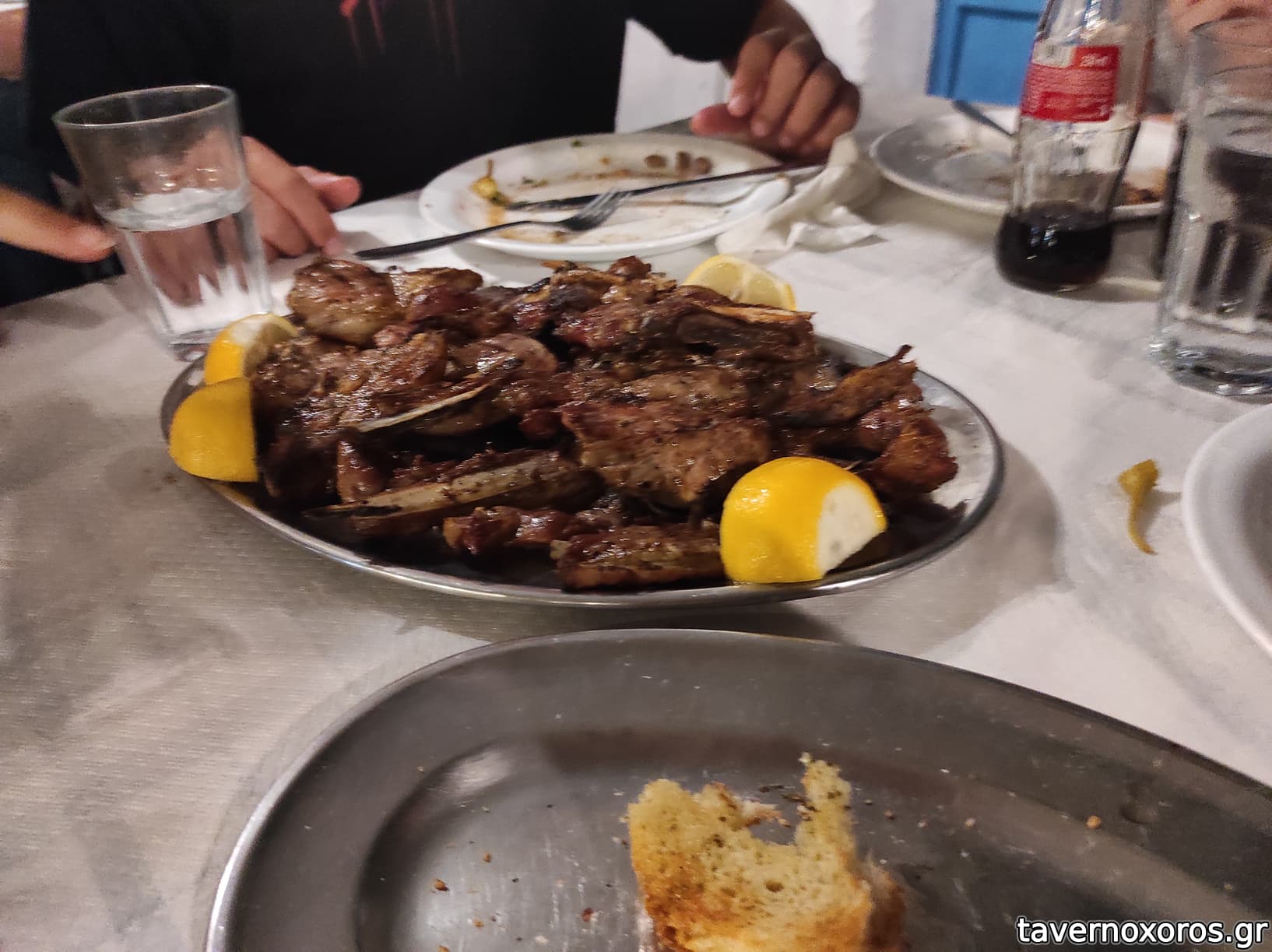 Η αυλή παραμένει δροσερή, τα τραπέζια δεν είναι το ένα πάνω στο άλλο με αποτέλεσμα να νιώθεις το κλίμα της χαλαρής οικογενειακής ταβέρνας. Το σέρβις αποτελεσματικό, χαλαρό χωρίς δήθεν τεμενάδες και κολλητιλίκια. Σαλάτα χωριάτικη καλή, πιταρούδια (ρεβιθοκεφτέδες) πολύ καλοί, πατάτες τηγανητές ορίτζιναλ καλές, ντολμαδάκια νόστιμα, 0,5 κιλό παϊδάκια καλά, 10 τμχ σουβλάκι οκ+2 μπύρες+4 αναψυκτικά=52 ευρώ.