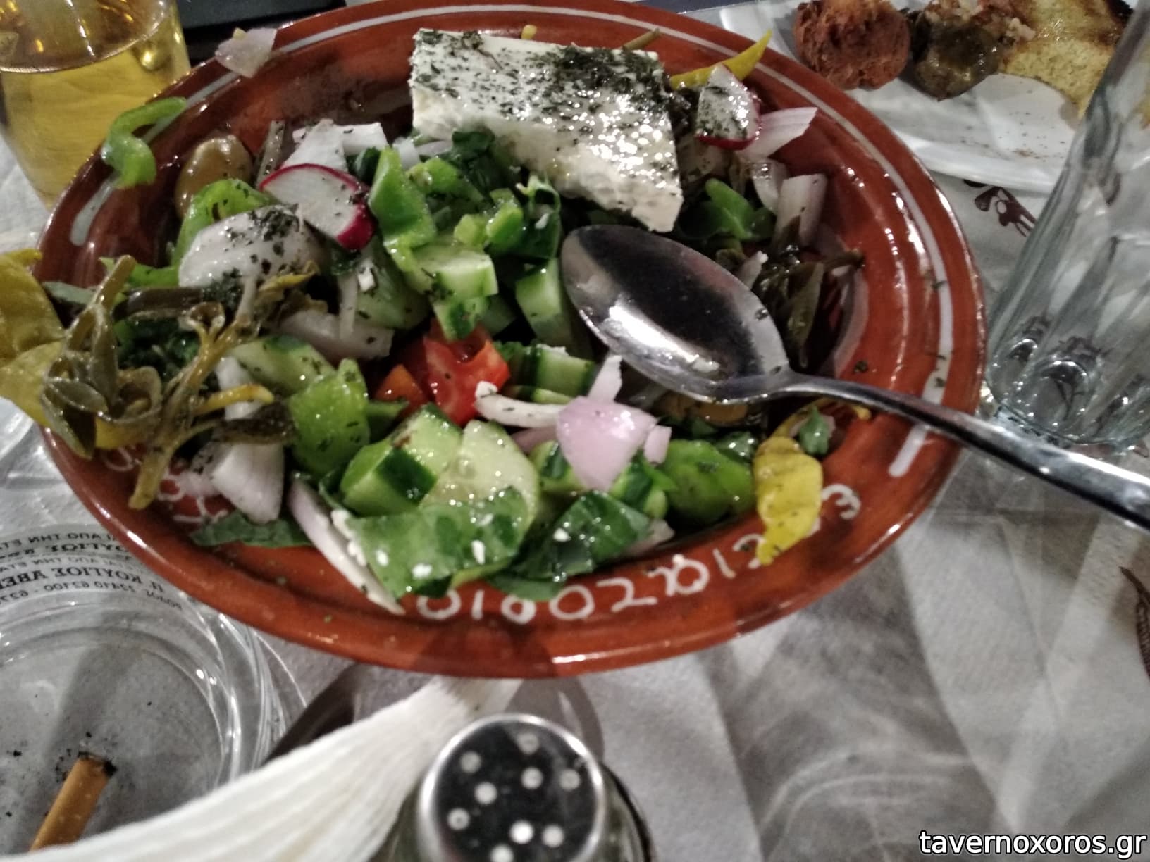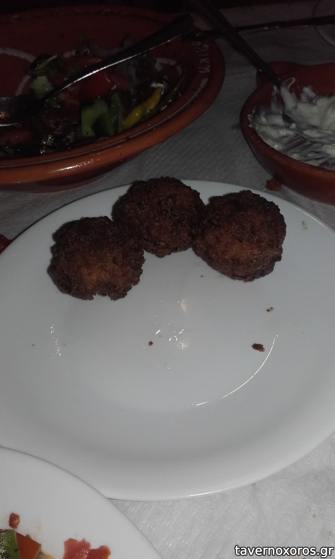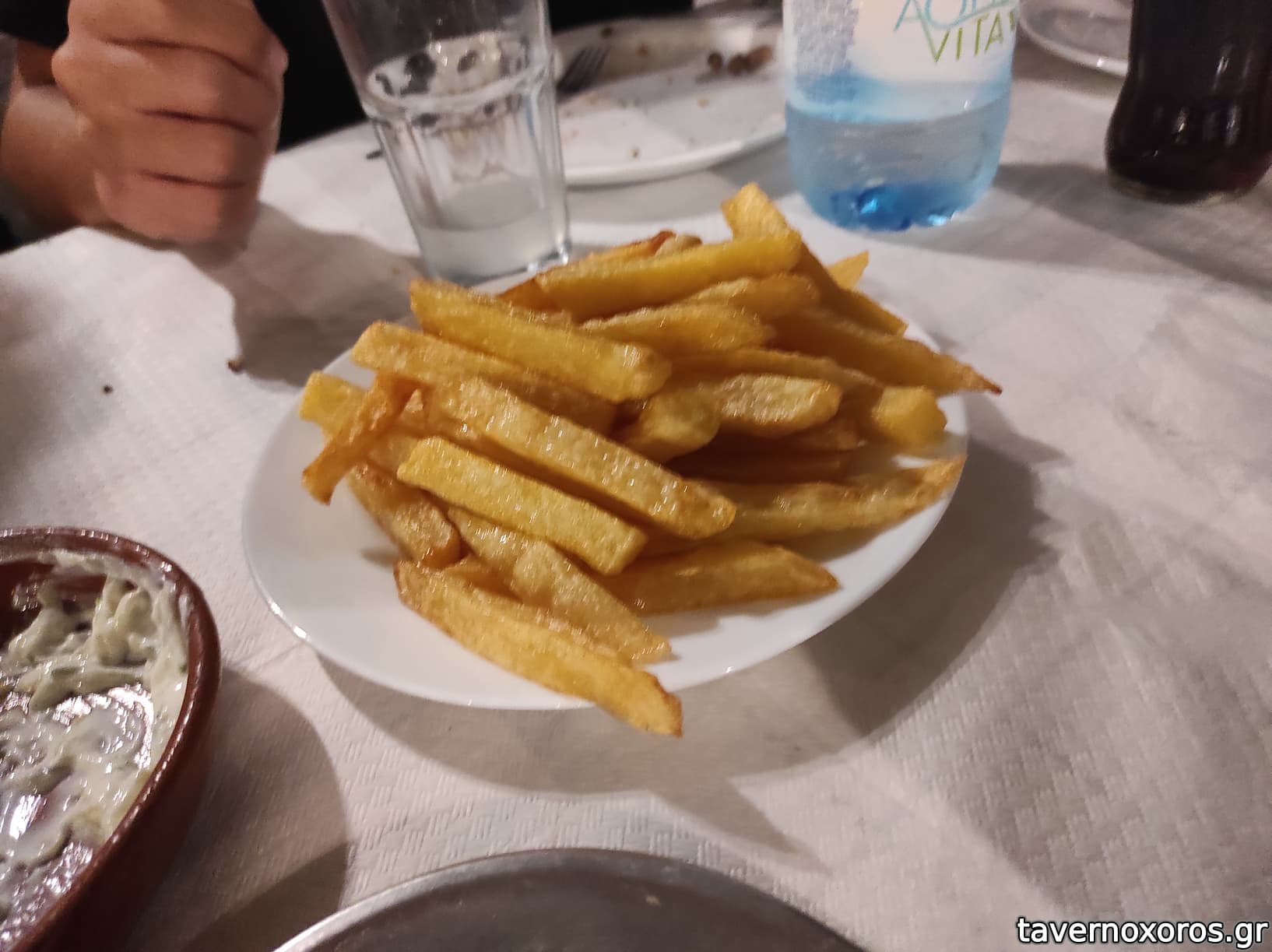 Η αυλή παραμένει δροσερή, τα τραπέζια δεν είναι το ένα πάνω στο άλλο με αποτέλεσμα να νιώθεις το κλίμα της χαλαρής οικογενειακής ταβέρνας. Το σέρβις αποτελεσματικό, χαλαρό χωρίς δήθεν τεμενάδες και κολλητιλίκια. Σαλάτα χωριάτικη καλή, πιταρούδια (ρεβιθοκεφτέδες) πολύ καλοί, πατάτες τηγανητές ορίτζιναλ καλές, ντολμαδάκια νόστιμα, 0,5 κιλό παϊδάκια καλά, 10 τμχ σουβλάκι οκ+2 μπύρες+4 αναψυκτικά=52 ευρώ.