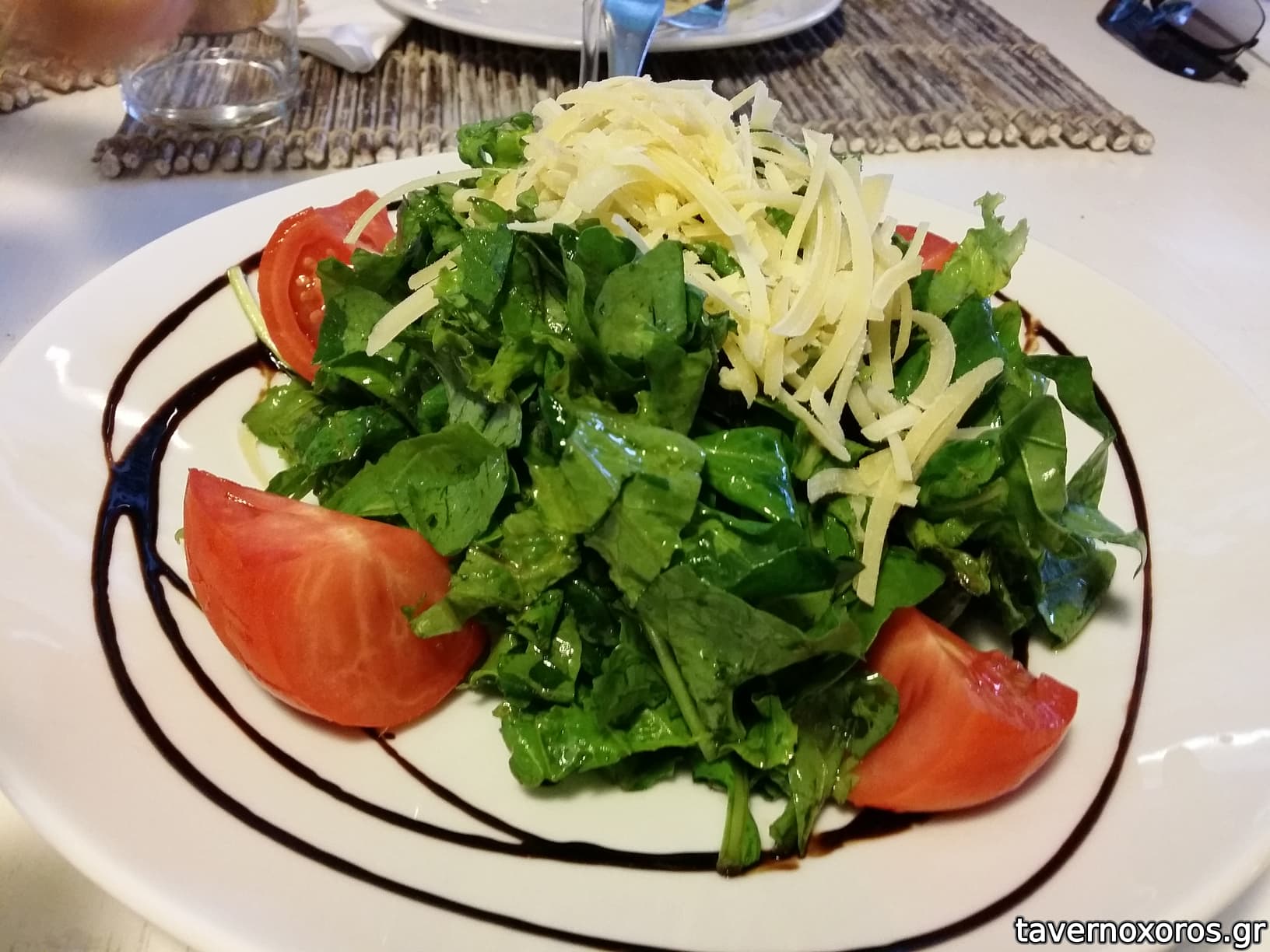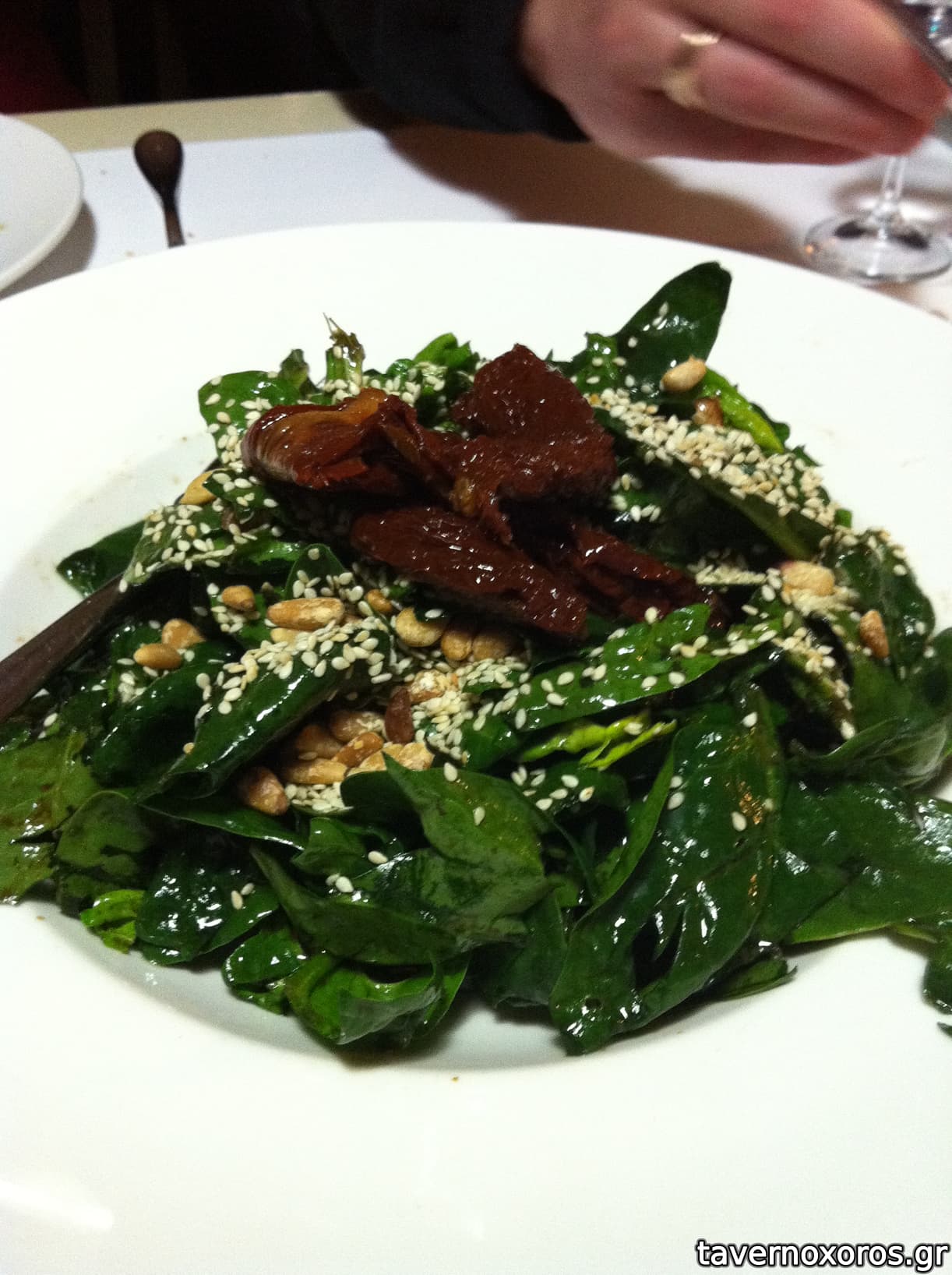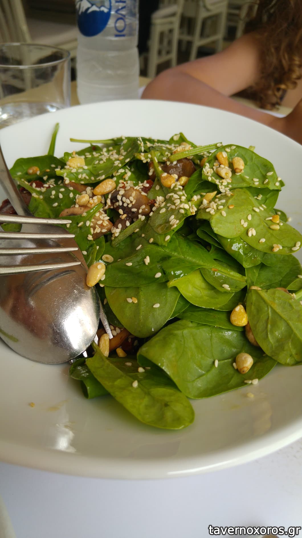 *σαλάτα με σπανάκι-κουκουνάρι-μανιτάρια-λιαστή ντομάτα, πολύ καλή.