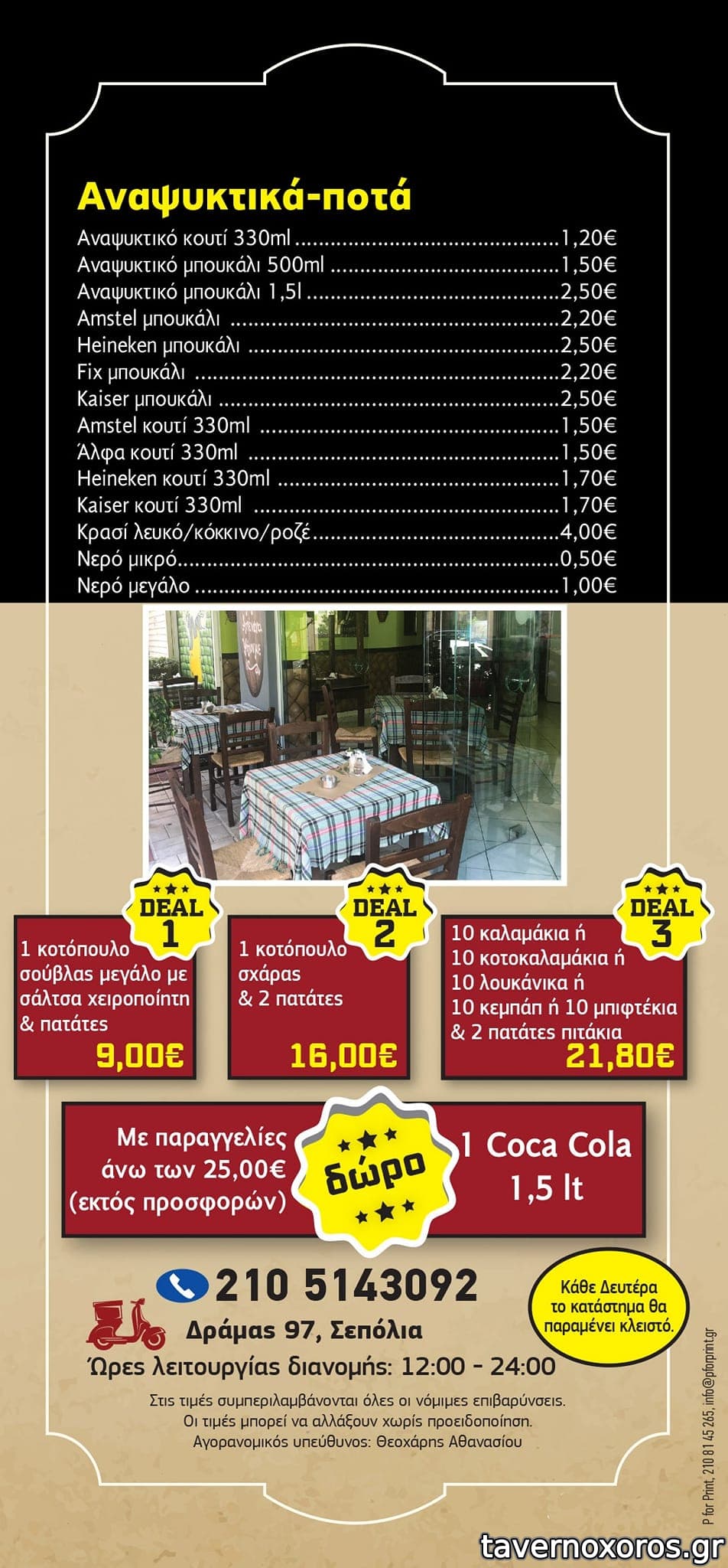 12:00-00:00, Κυριακή κλειστά
