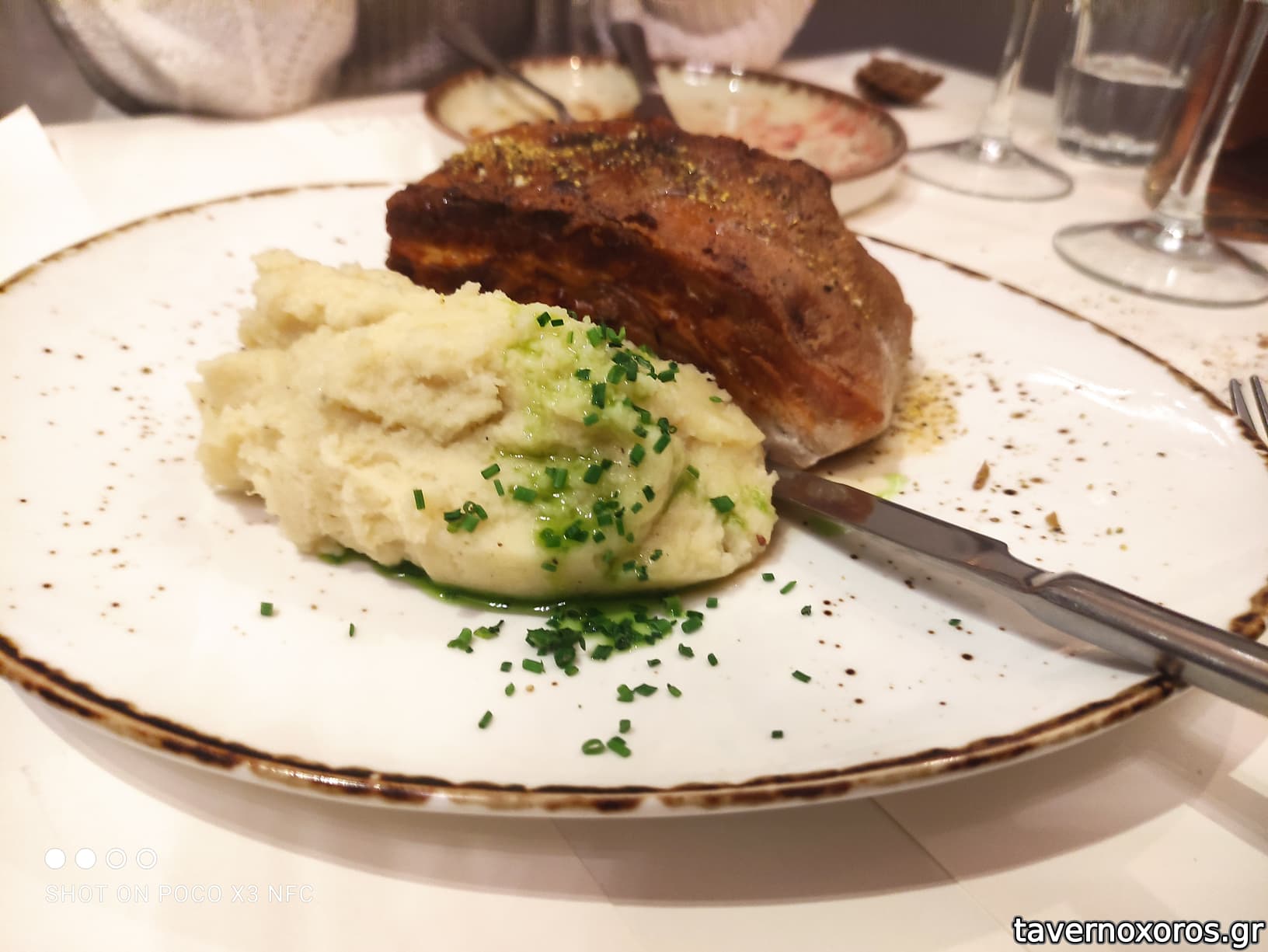 Χοιρινή πανσέτα με πουρέ και άρωμα τρούφας εξαιρετική.
