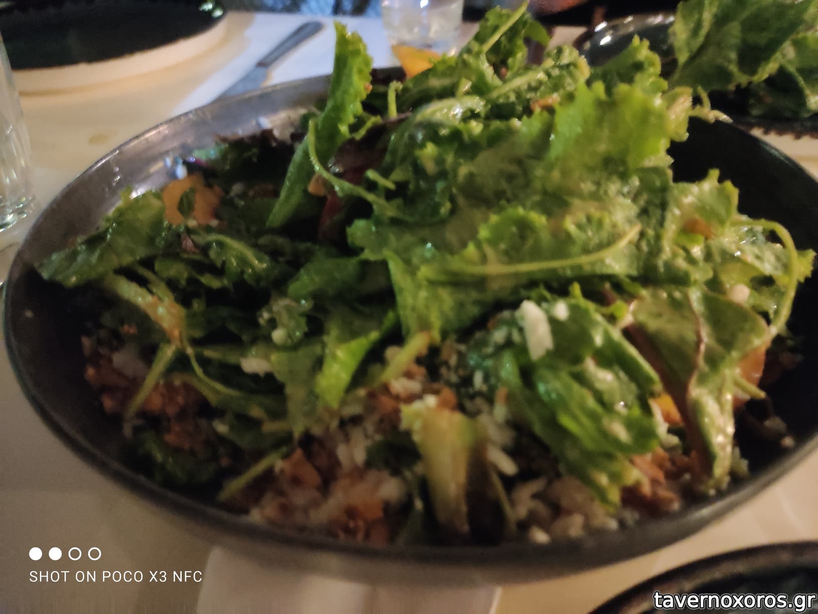 Σαλάτα βαλεριάνα, ντομάτα με σος φέτας πολύ καλή.