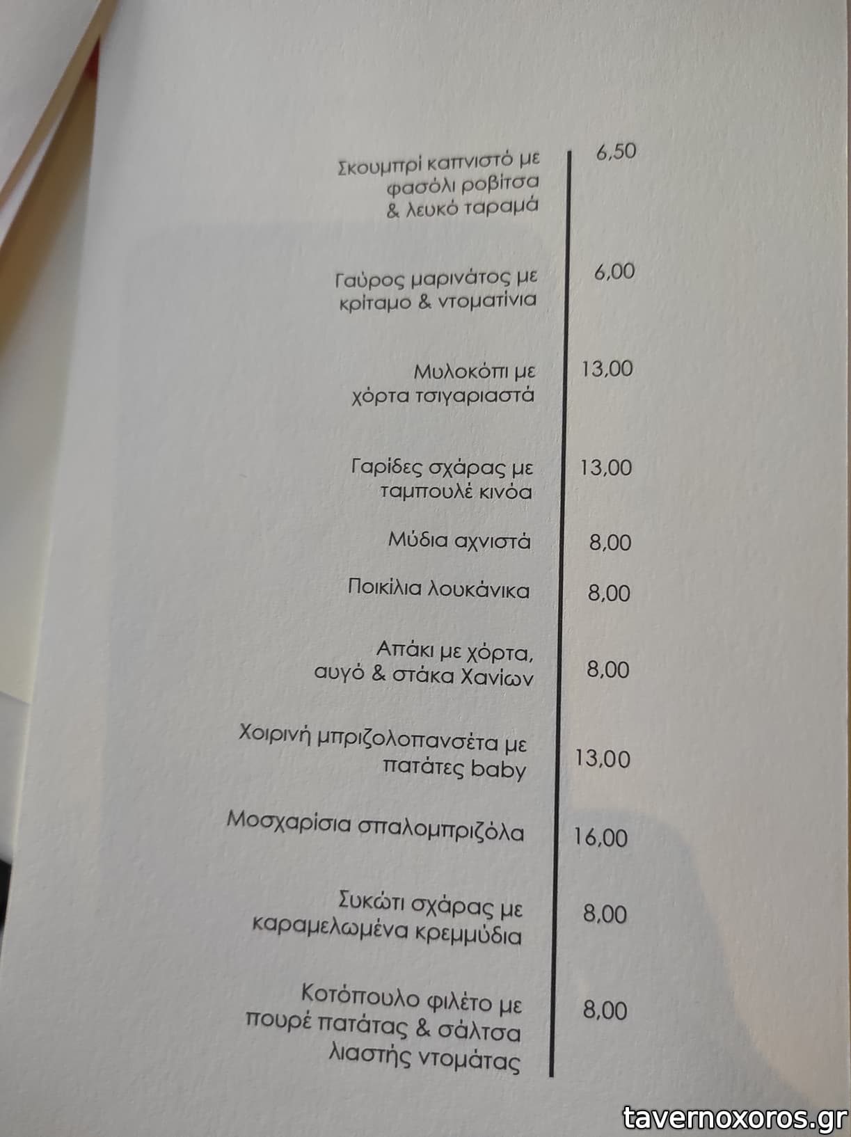 Μενού από θαλασσινά και κρεατικά συν τα πιάτα ημέρας στον τοίχο. Ωραίο χύμα κρασί. Γλυκό κέρασμα στο τέλος. Γεύσεις πολύ καλές.