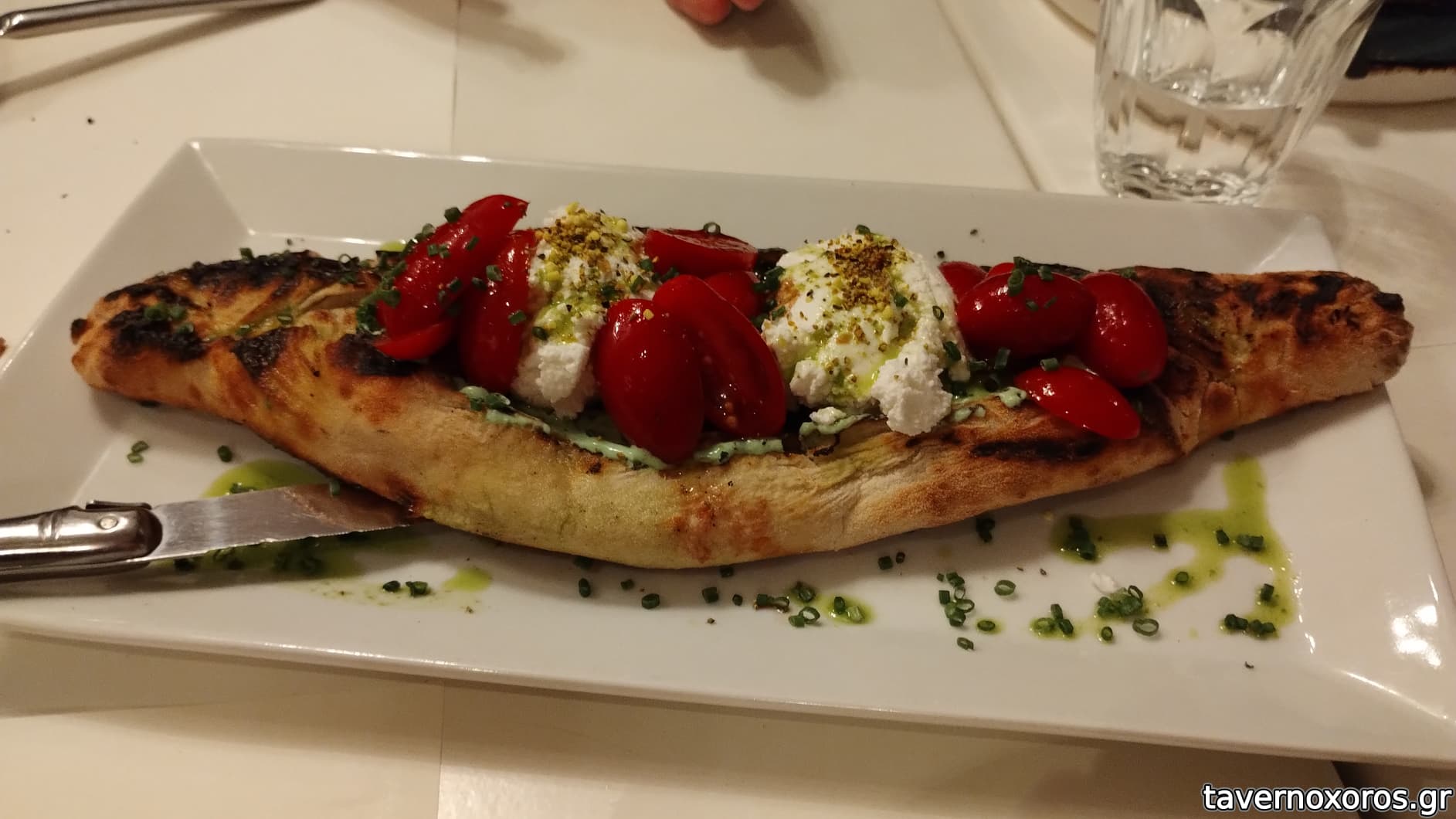 -Ζυμη πεινιρλι, με ντοματινια και ξινοτυρι. Πολυ καλο.