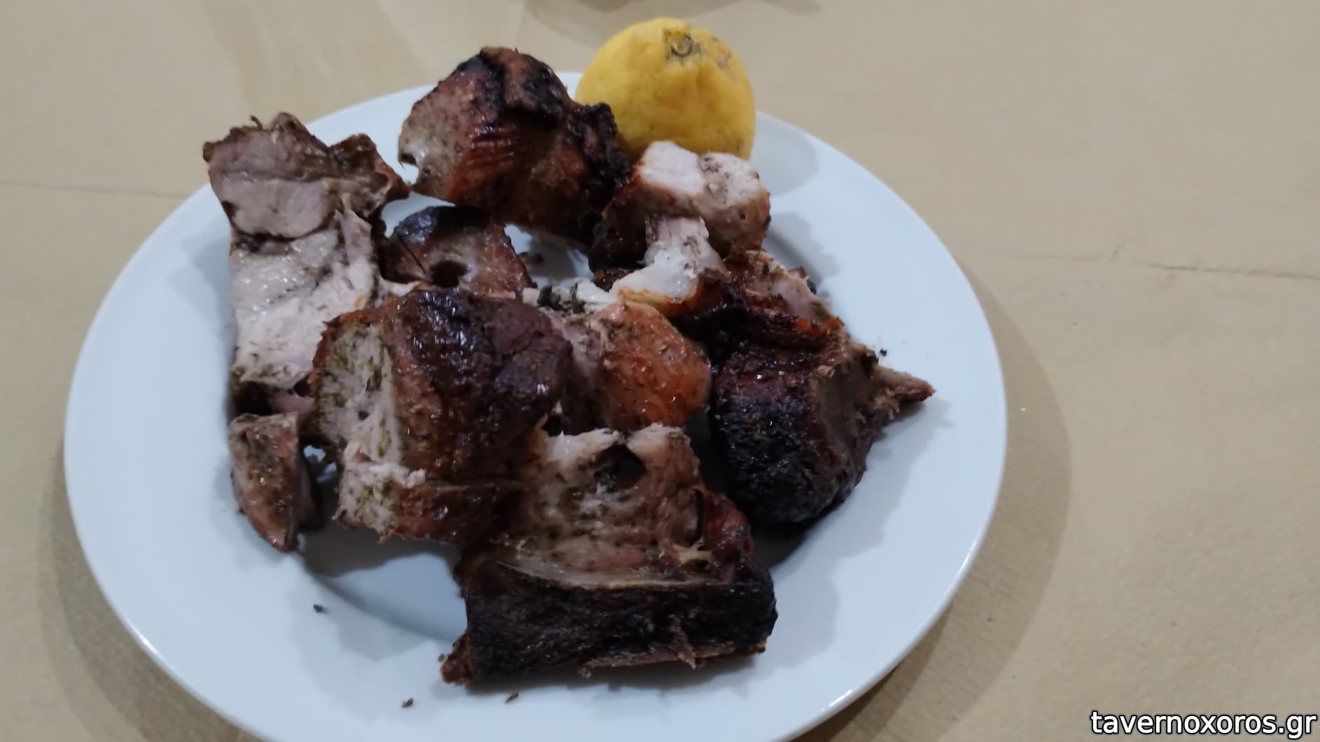 Κοντοσούβλι χοιρινό (τίμιο, αλλά στεγνό και μετριοκακό. Πρέπει να είχε κοπεί πριν ώρα. Ψαχνό πάντως)