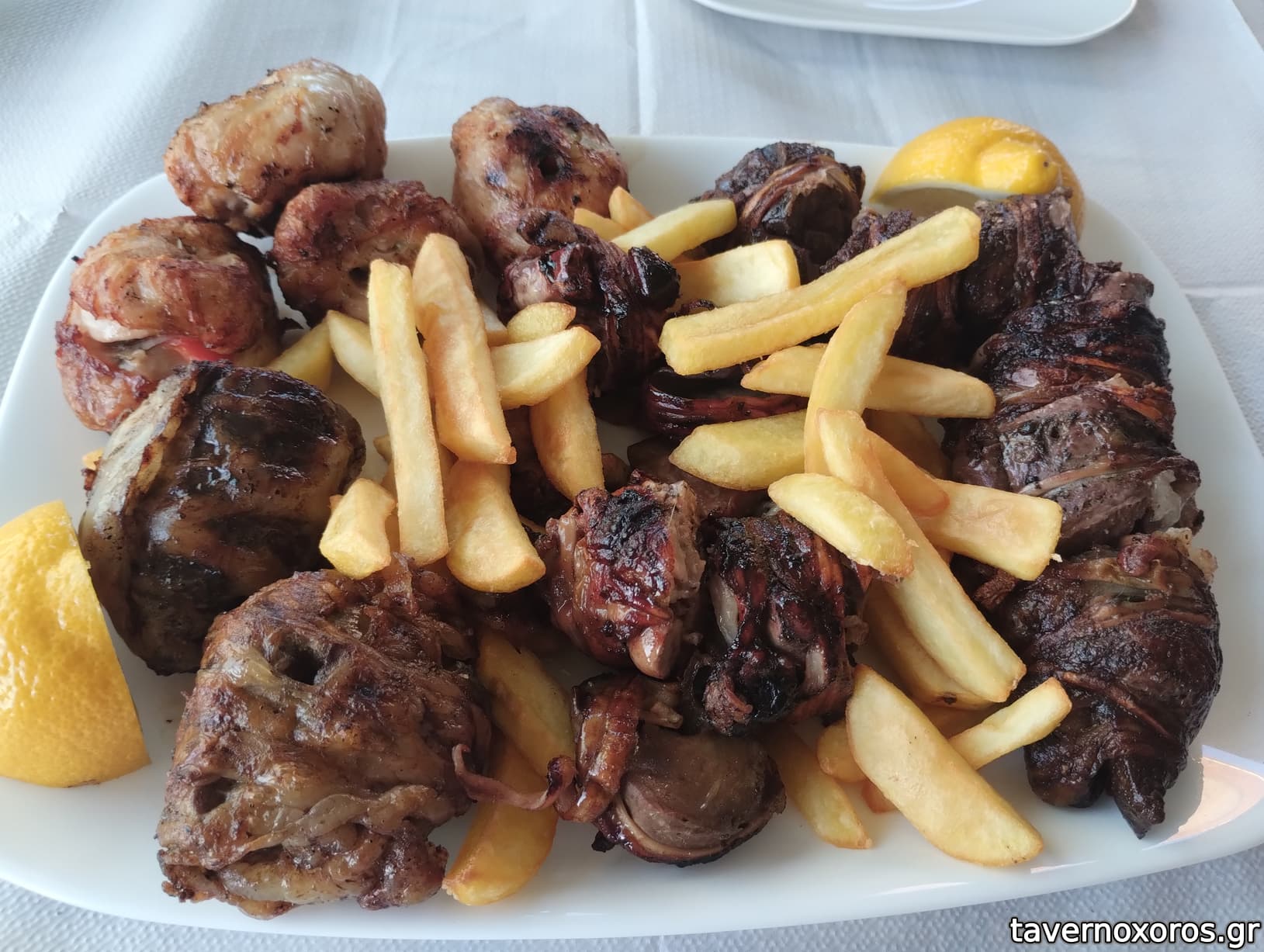 Μια μερίδα σπληνάντερο και μεζές από φριγαδέλι, κοκορέτσι, κοτόπουλο μπουκιά γεμιστό
