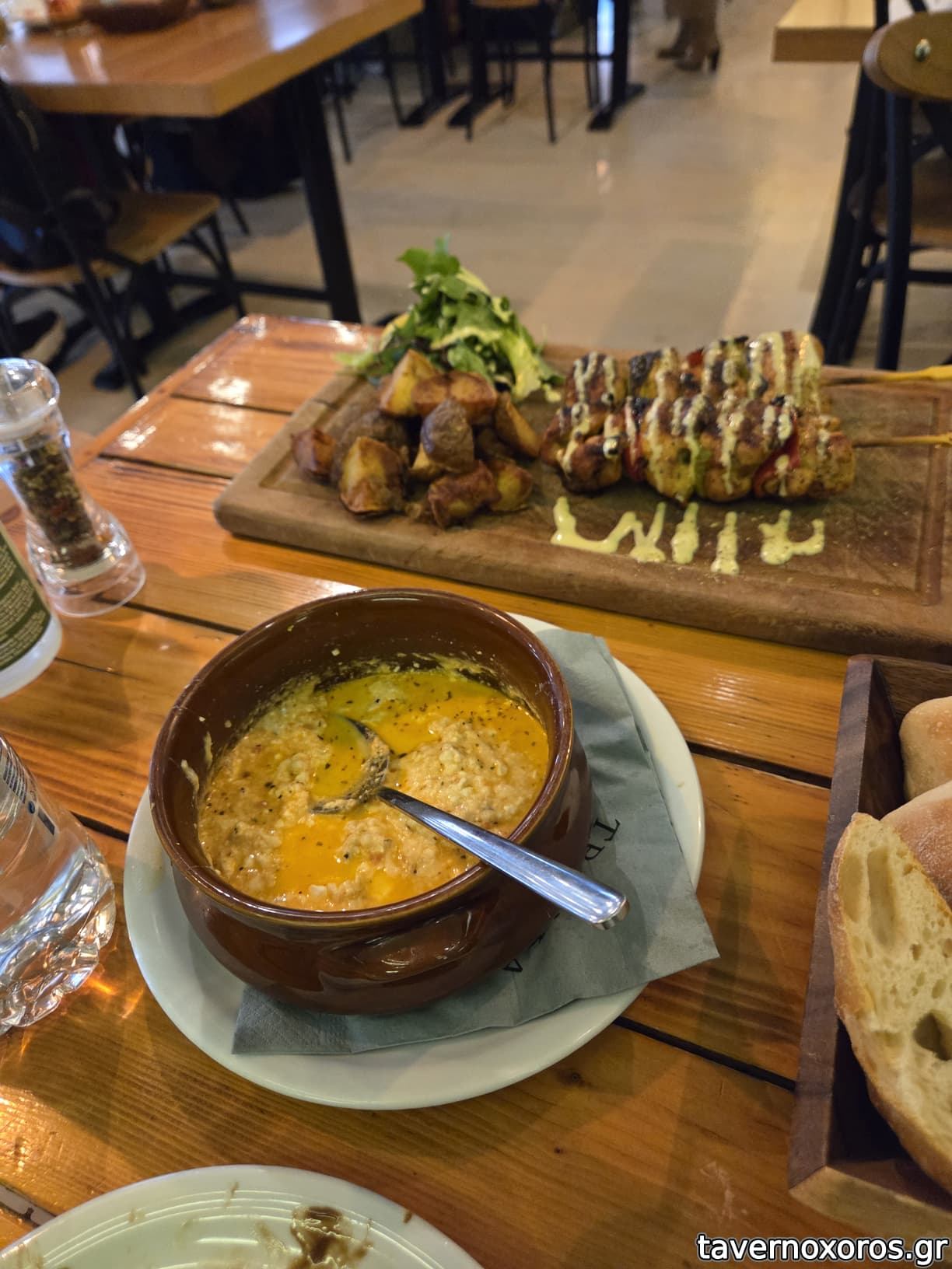Το φαγητό ήταν ικανοποιητικό για τα λεφτά του. Πήραμε τα μοσχαρίσια μάγουλα με ζυμαρικά τα οποία ήταν τρυφερά όπως αναμενόταν, ταμπουλε (μια μικρή τεχνική αστοχία αλλά οκ), μια τυπική χωριάτικη και την στραπατσάδα με το λουκάνικο τα οποία βρήκα υπέρ του δέοντος πικάντικα (εννοώ με πολλά μπαχαρικά, όχι καυτερά). Ολα εντός πλαισίου ενός συνοικιακού μαγειριου, flat χωρίς πολλές εντάσεις αλλά χορταστικά. Πληρώσαμε 65 ευρώ για μια τετραμελή οικογένεια και τη βρήκαμε μια δίκαιη τιμή. Η αισθητική του χώρου δεν είναι άξια λόγου, αλλά μάλλον δεν πας εκεί γιαυτο.