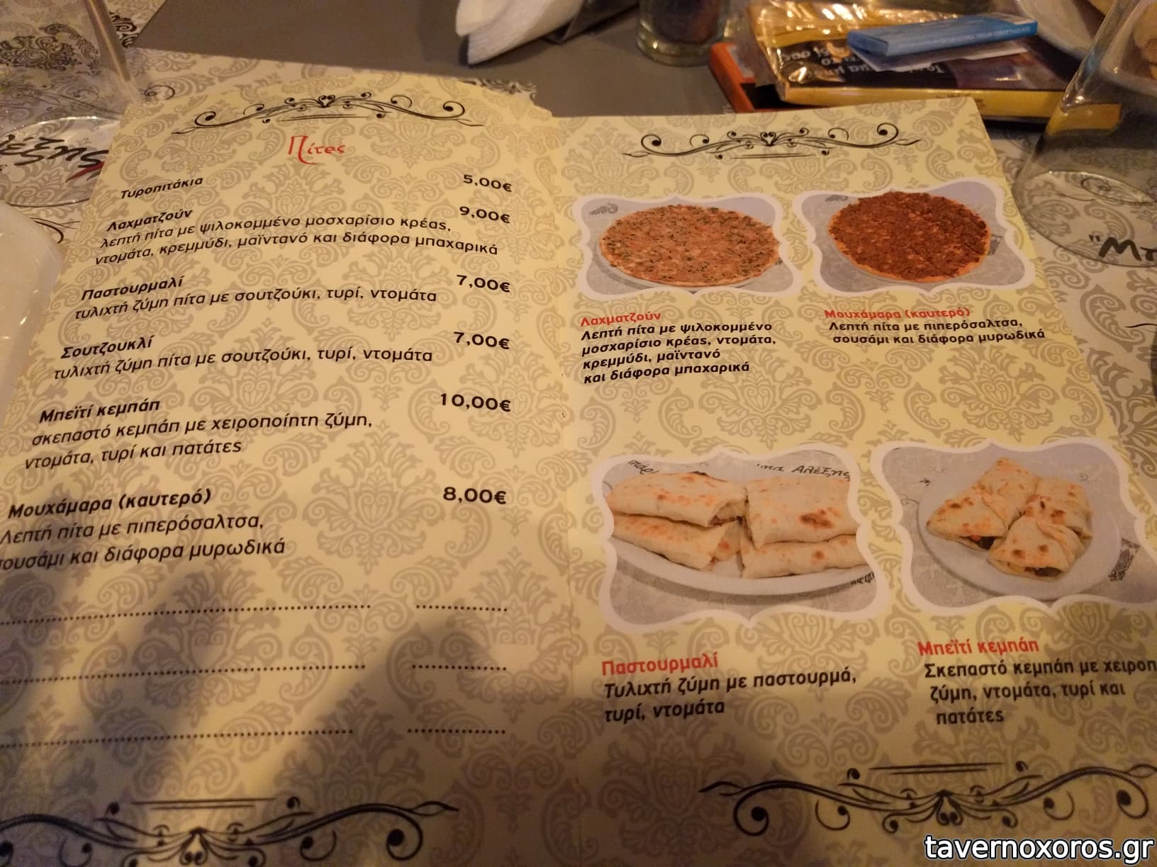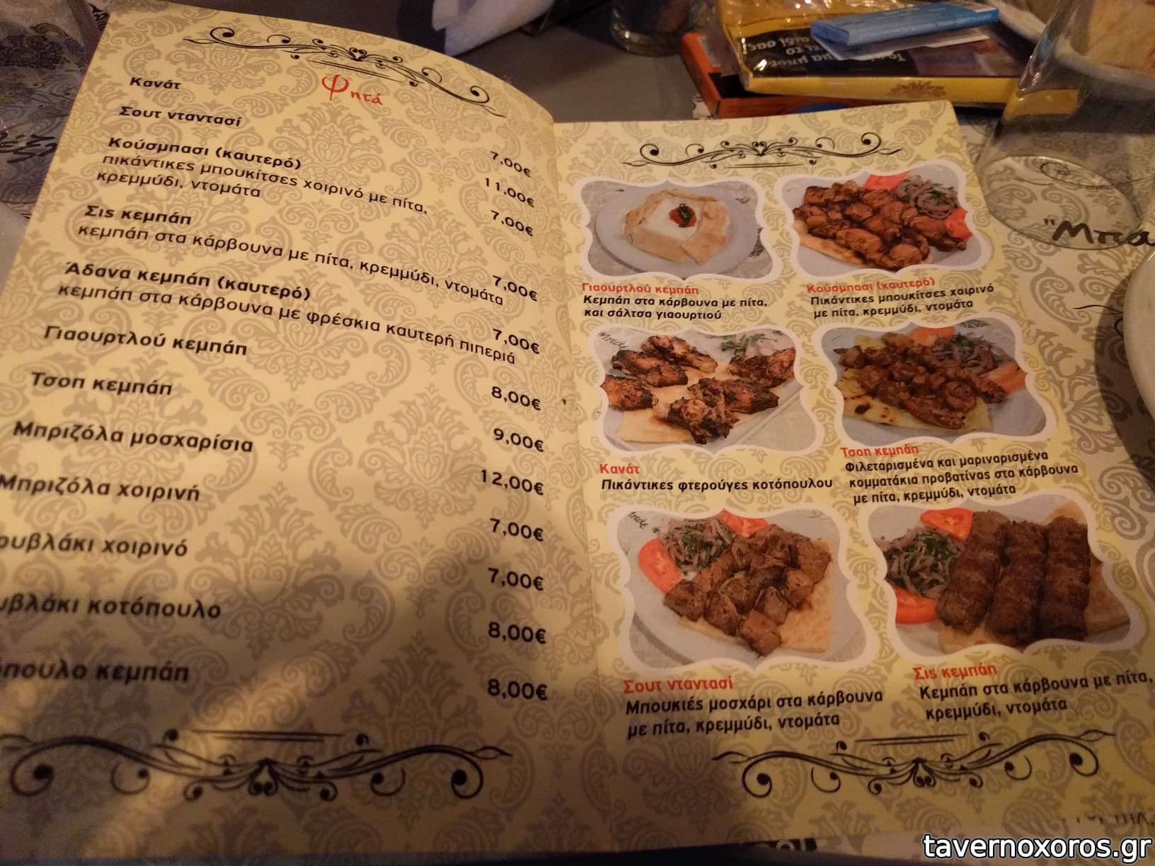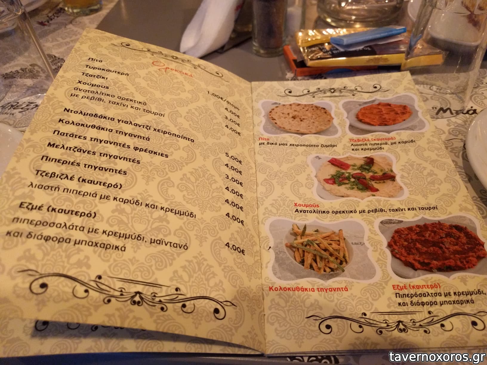 Στο φαΐ τώρα: τζεβίζλε, χαϊντάρ, χειροβομβίδες, αλί - ναζίκ, αμπουγανούτς, τας κεμπάπ, μουχάμαρα, μπεϊτί κεμπάπ, παστουρμαλί, σουτζουκλί, κούσμπασι, κανάτ, σουτ ντανασί, τσοπ κεμπάπ, χούμους, άδανα κεμπάπ, ταμπούλε, εσμέ, λουκάνικο καραμανλίδικο, ταψί κεμπάπ, σαγανάκι Μενεμένης πικάντικο, ομελέτα με παστουρμά, ψαράκι ψιλό, γάβρος, σαρδέλα, καλαμάρια, χταπόδι, σαλάτα Βόσπορος, σκορδαλιά, κολοκυθάκια τηγανητά, μελιτζάνες τηγανητές κλπ.