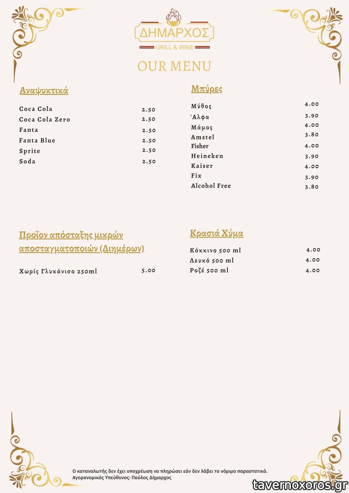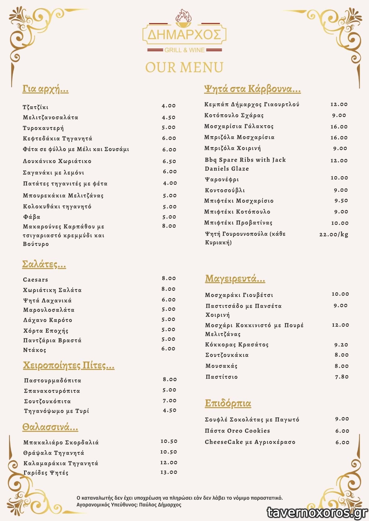 Τρ-Πα 13:00-23:30, Σα 13:30-23:30, Κυ 13:00-22:00, Δε κλειστά