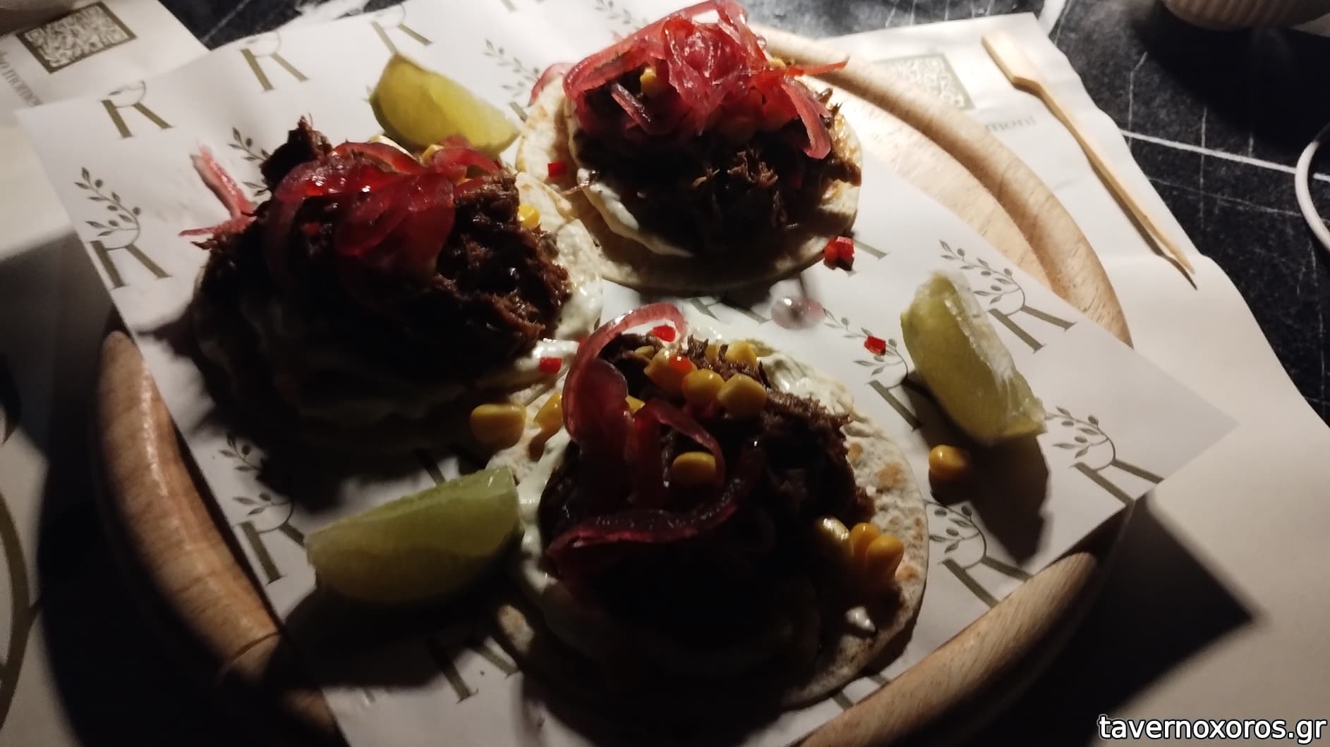 Tacos μοσχάρι (οκ, ζουμερά, αλλά μού φάνηκαν πολύ σκέτα. Θα ήθελα πιο πολλά υλικά)