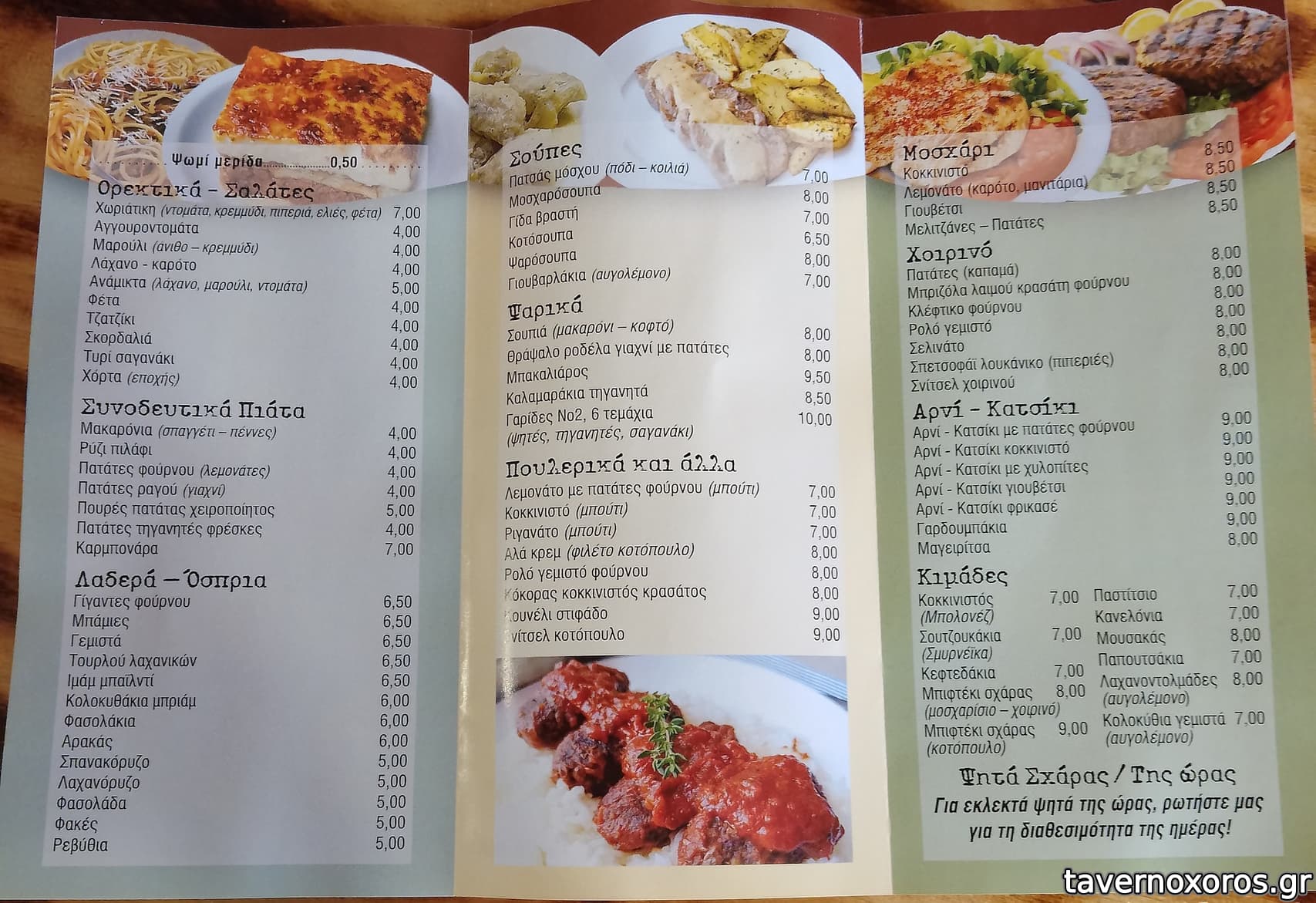 | Λέξεις κλειδιά | #πατσάς, #μακαρόνια, #πιλάφι, #φασόλια γίγαντες, #γεμιστά, #μπάμιες, #ρεβύθια, #βραστό, #λεμονάτο, #κόκορας κρασάτος, #γίδα βραστή, #γιουβέτσι, #κλέφτικο, #κοτόσουπα, #σπεντζοφάι, #σνίτσελ, #αρνάκι στο φούρνο, #γαρδουμπάκια, #αρνάκι φρικασέ, #κουνέλι στιφάδο, #μουσακάς, #παστίτσιο, #παπουτσάκια, #λαχανοντολμάδες, #κεφτεδάκια, #σουτζουκάκια σμυρνέικα, #ψαρόσουπα, #θράψαλα, #σουπιές, #γαρίδες, #μπακαλιάρος |