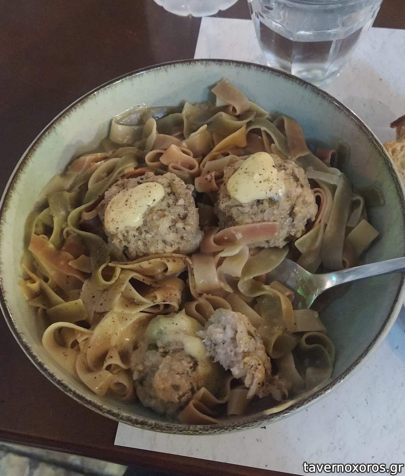 Βάλσαμο: γιουβαρλάκια κοτόπουλου αρωματισμένα με βότανα Κρήτης και χυλοπίτες λαχανικών (ενδιαφέρον και πολύ καλό, κυριαρχούσε το φασκόμηλο από τα βότανα)