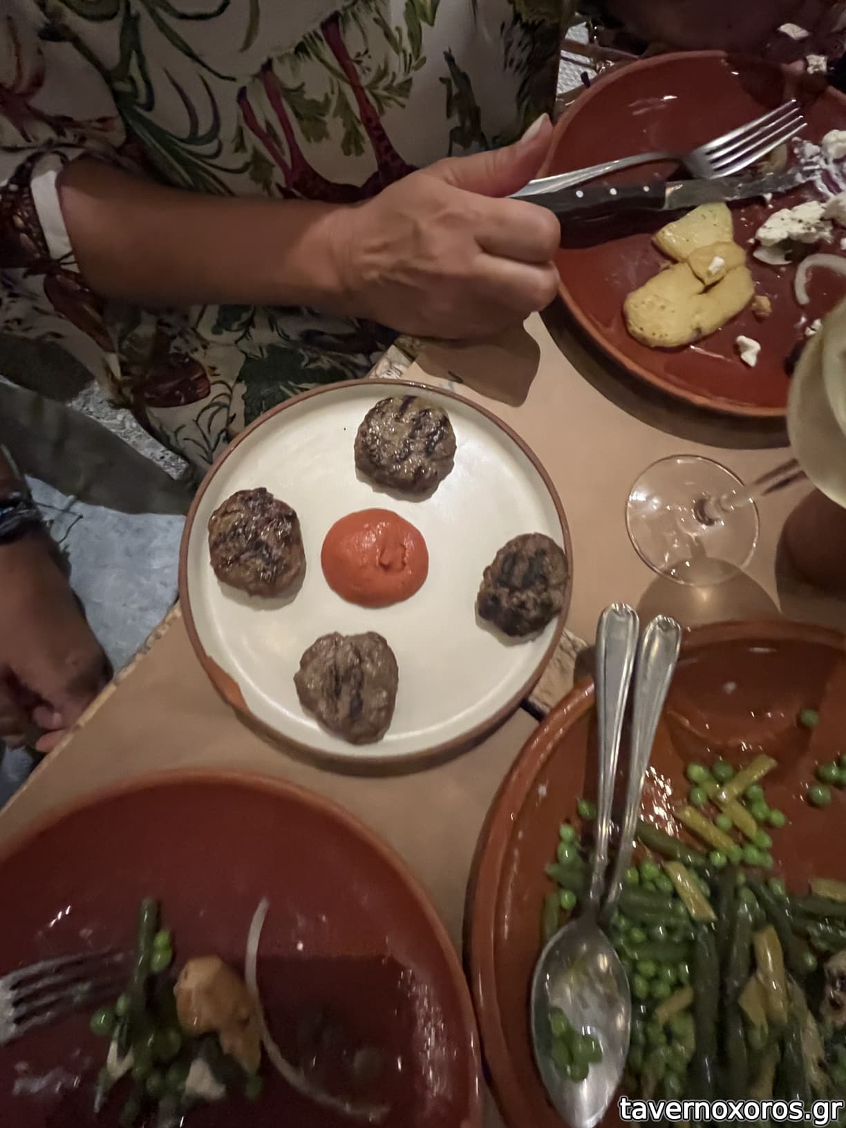 Εξαιρετικά κεφτεδάκια, σαλάτα φασολάκια καλοκαιρινή, στηθοπλευρά με τραχανά, κοντοσούβλια.