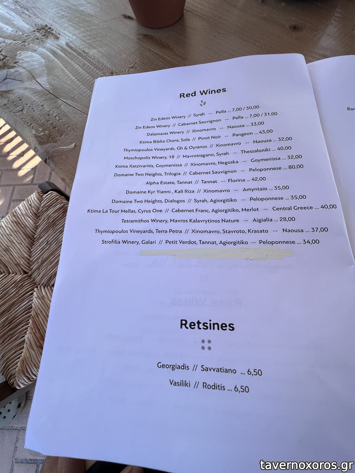 Λίστα κρασιών ... κλασική χωρίς αρχή και τέλος. Αρκετές επιλογές από τις ίδιες ποικιλίες ... χωρίς ποικιλία στις ποικιλίες.