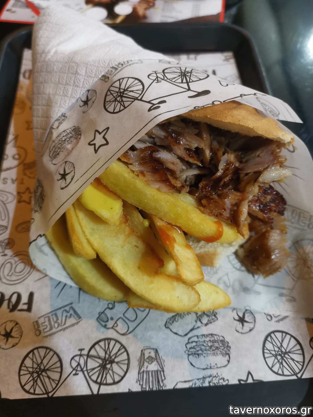 Ψιλοκομμένος ο γύρος και αρκετά αλμυρός στο αλάτι,δεν έχω θέμα προσωπικά αλλά θεωρώ ότι τσιμπούσε αρκετά. Το ψωμάκι το πατάει στην τοστιέρα ενώ οι πατάτες είναι από αυτές τις χοντρές προκάτ