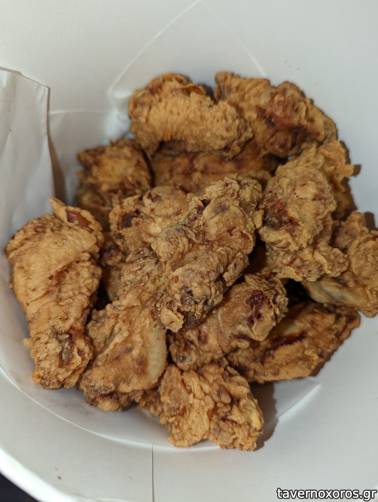 Το μόνο καλό που έχω να πω είναι για το πανάρισμα, το οποίο είναι ελαφρύ, τραγανό και παραμένει στο κοτόπουλο, και φέρνει πολύ στο kfc.