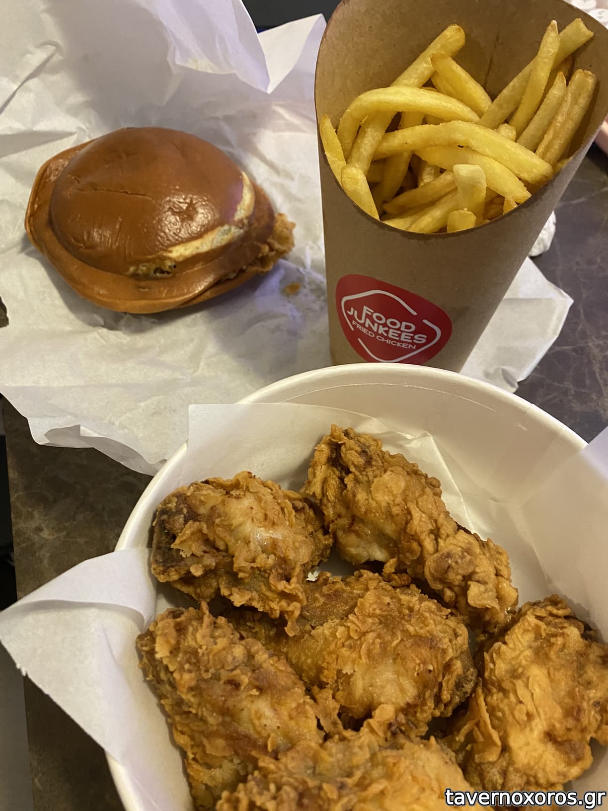 Στο διπλανό τραπέζι έτρωγαν μια παρέα τεσσάρων Αμερικάνων και τους ρώτησαν αν τους άρεσαν και μου είπαν ότι το θεωρούν το food junkees καλύτερο από το KFC.