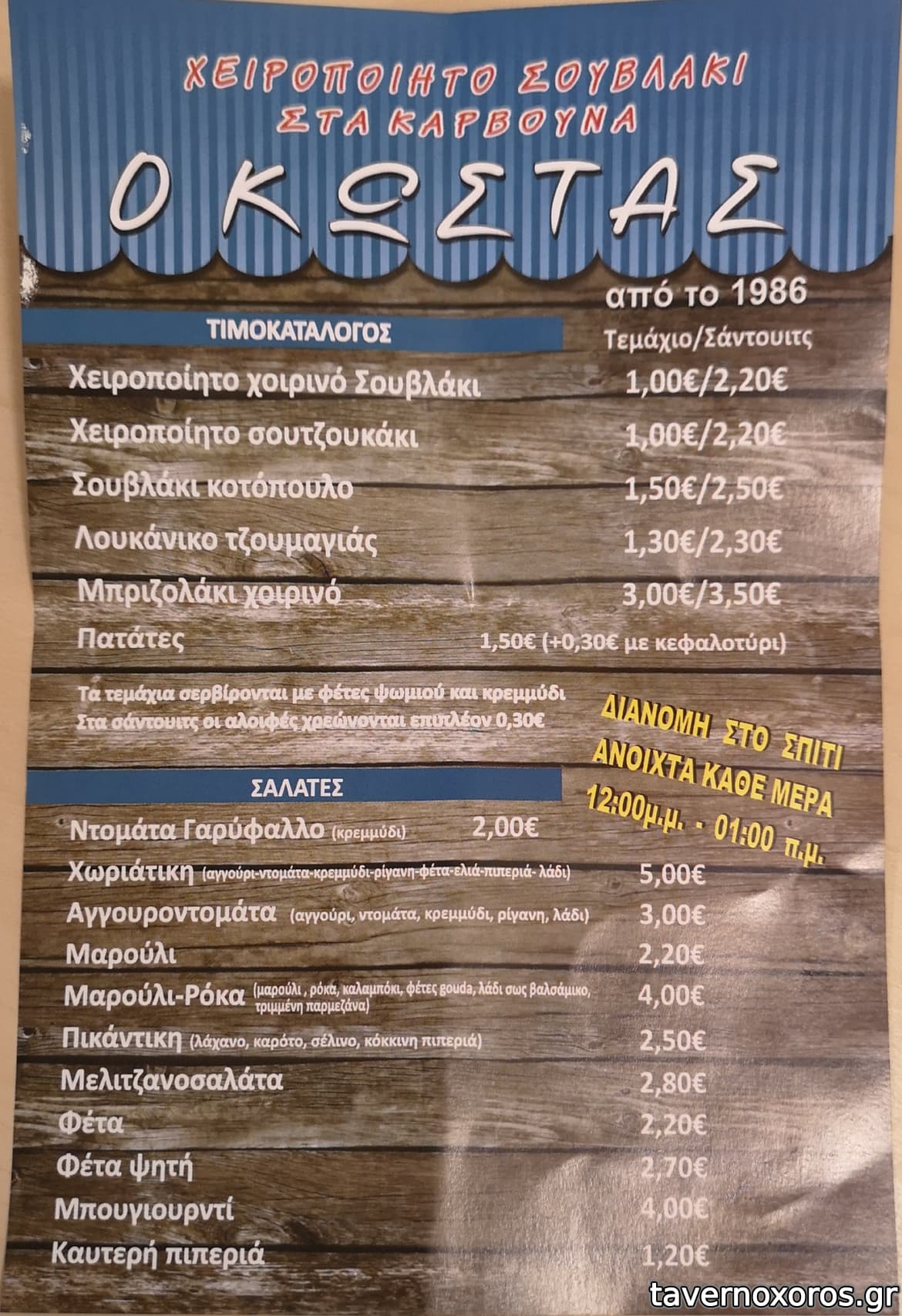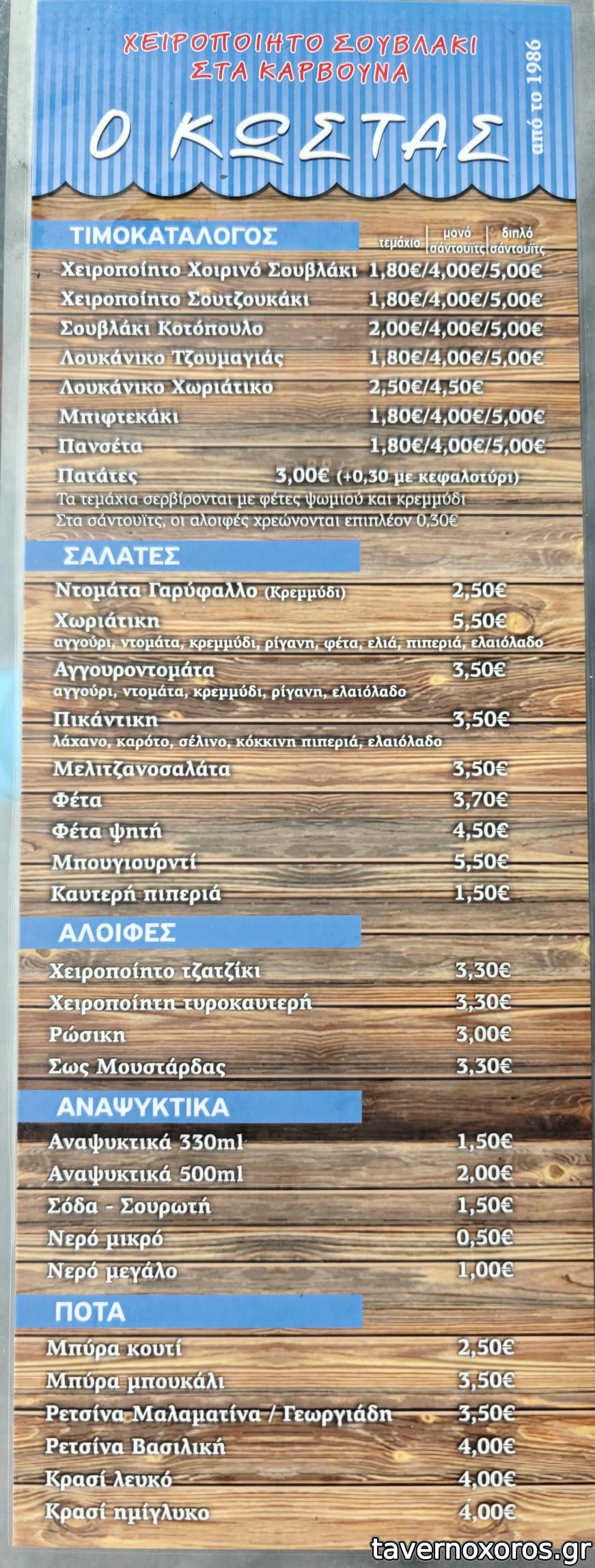 Το κλασσικό του σουβλάκι και σουτζουκάκι ζουμερά και νόστιμα. Μετά από 2 χρόνια κράτησε ίδιες τιμές