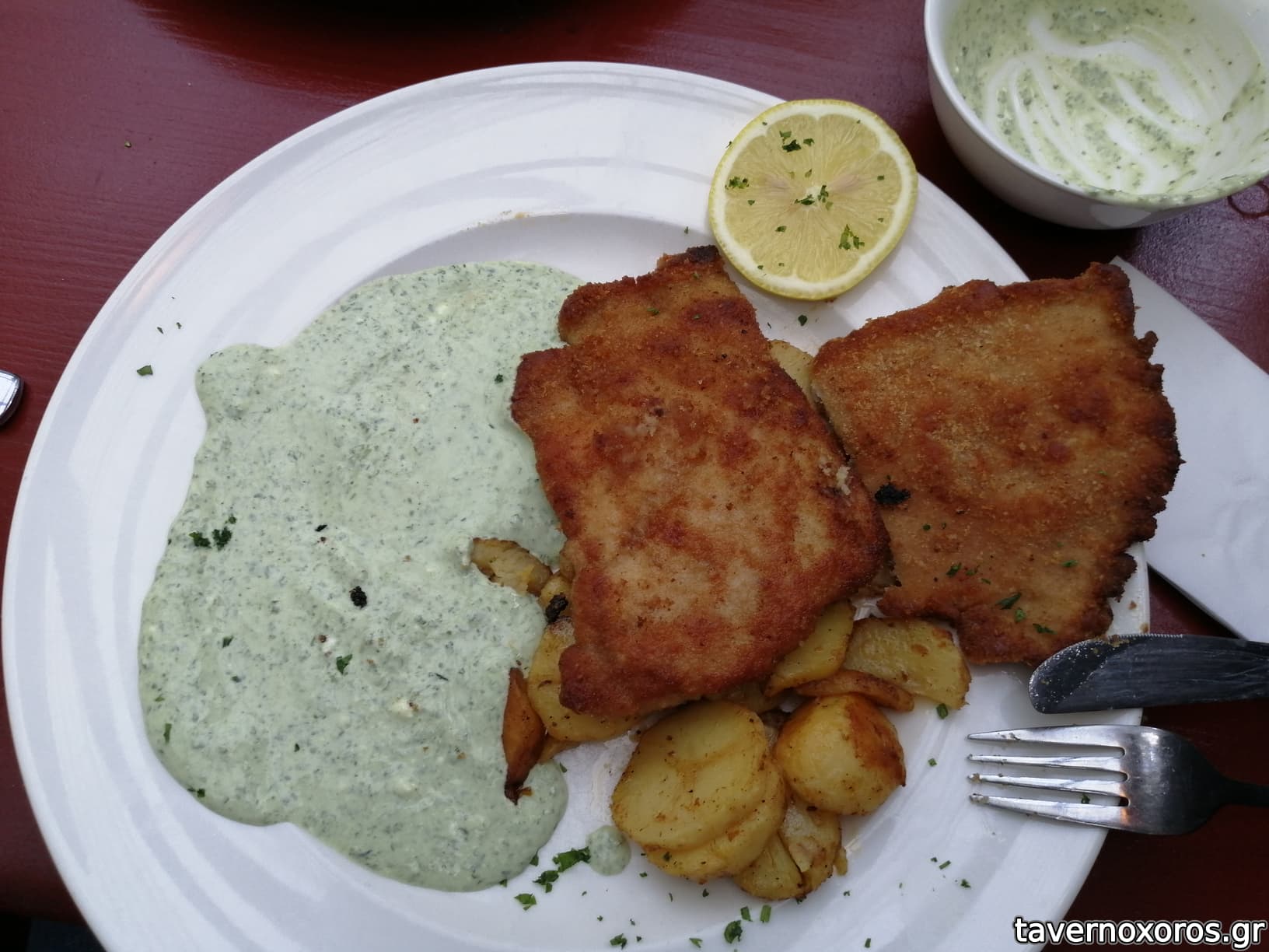 Σνίτσελ Φρανκφούρτης με πράσινη σως