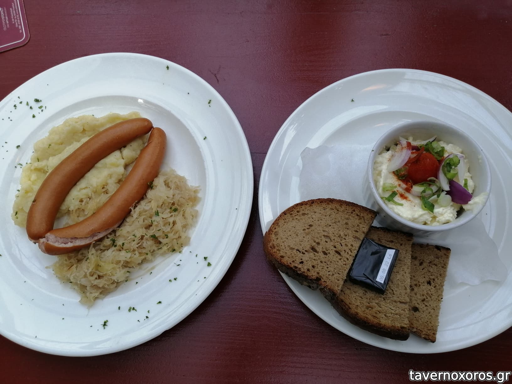 Λουκάνικα Φρανκφούρτης με ξινολάχανο και πουρέ: λιτά κι αναμενόμενα