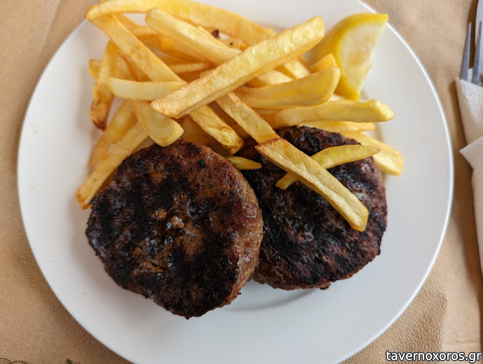 Μερίδα μπιφτέκι (μέτριο, πατάτες ετοιματζίδικες)