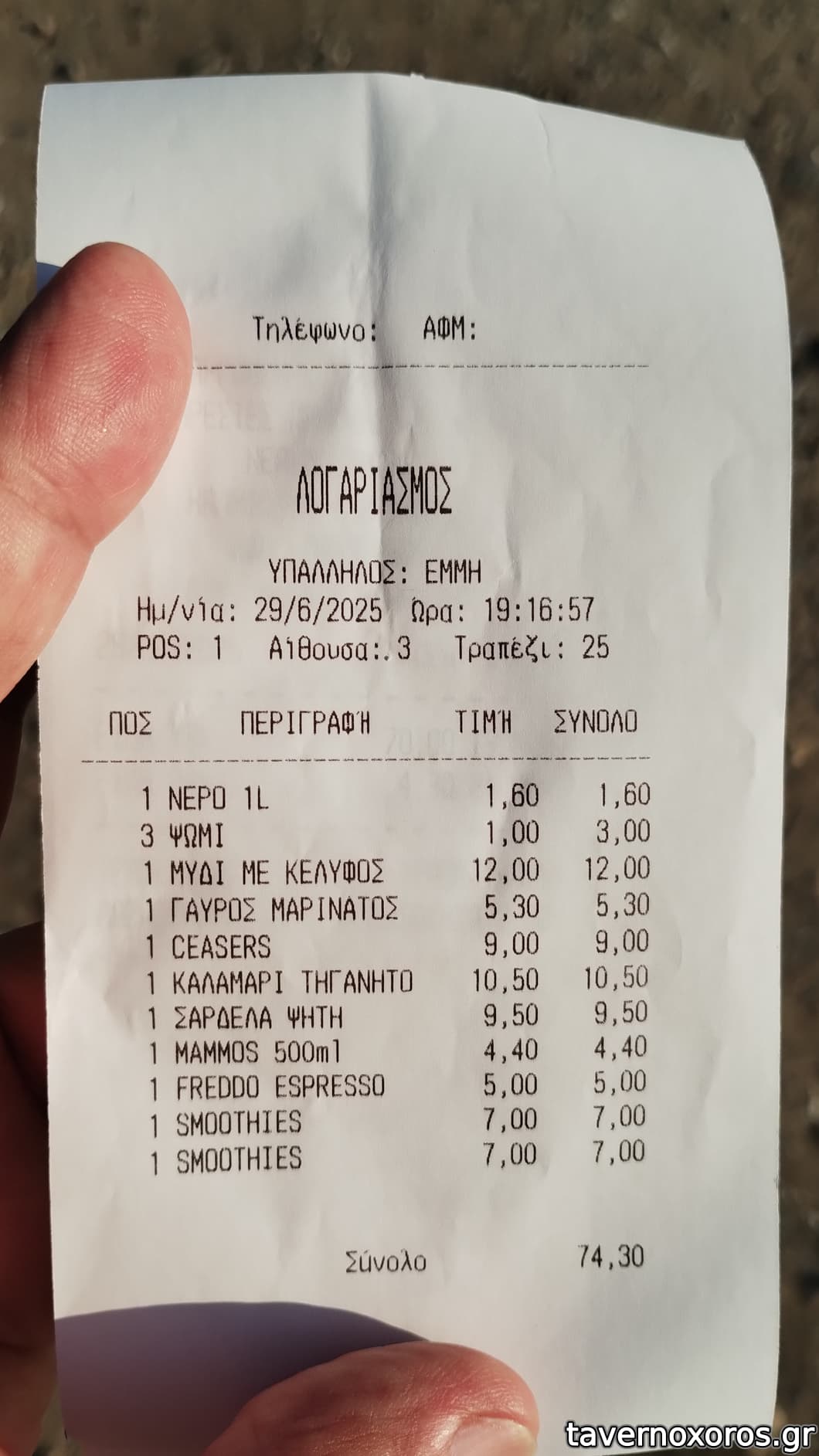 Σέρβις νεανικό και χαμογελαστό (εκτιμητέο). Πιάτα γενναιόδωρα, όχι χωρίς αστοχίες, αλλά πολύ οκ γενικά σε γεύσεις και τιμολογιακά. Μια ματιά που έριξα στα μεγάλα ψάρια, μού φάνηκαν τσιμπημένες οι τιμές κιλού. Στο φαγητό 3 άτομα με λίγο φαγητό και με ελάχιστα ποτά, μάς βγήκε 55ε. (δείτε φωτό)
