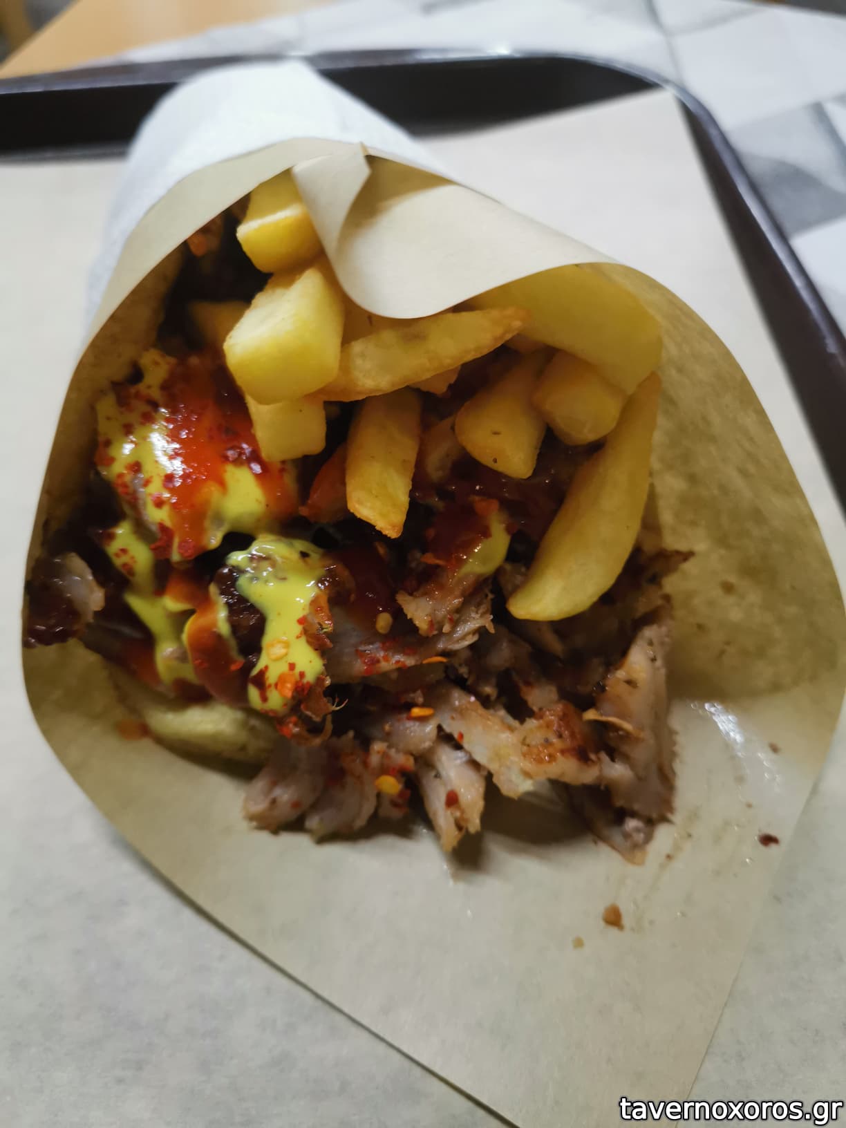 Ο γύρος ένα κλικ πιο χοντροκομμένος,θα έλεγα τυπικό κόψιμο χωριού/μικρού περιφερειακού μέρους της Θεσσαλονίκης,ομοίως και η πίτα(ξεροψημένη και ελαφρώς λαδωμένη)