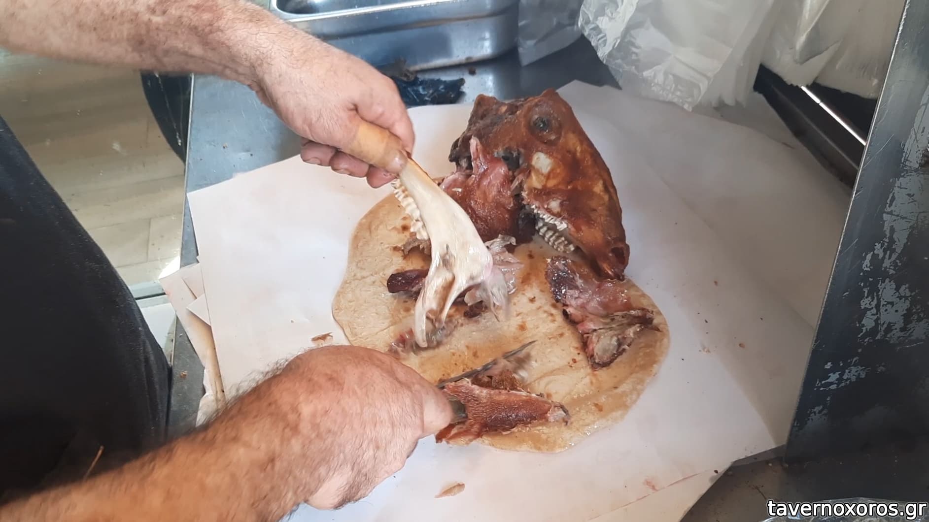 Ολόκληρο κεφάλι αρνί, πάνω σε πίτα, με καυτερό πιπέρι (όνειρο)